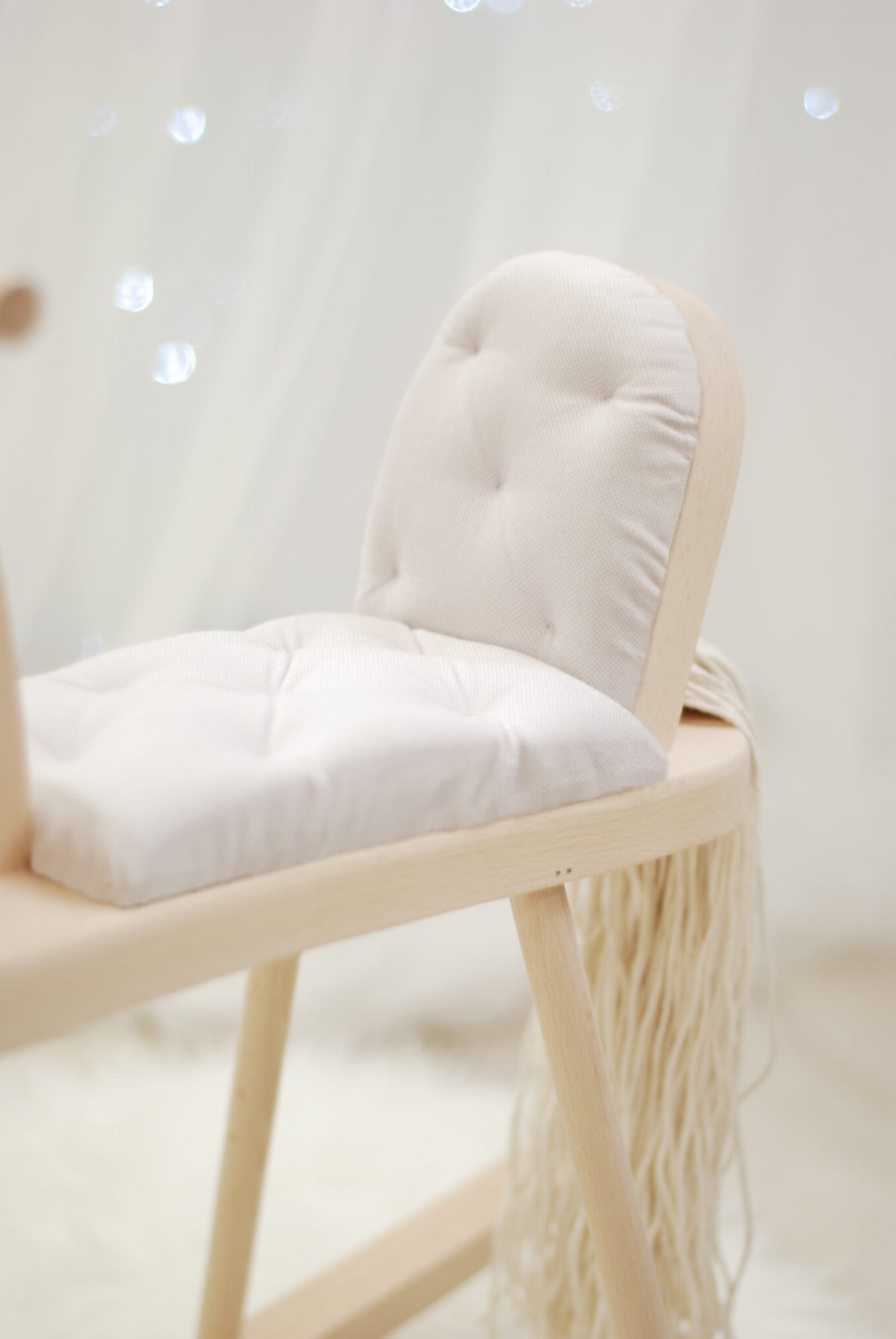 Siodełko i oparcie są wypełnione elastyczną pianką tapicerską o wysokiej gęstości – dzięki temu są wygodne, nie odkształcają się i zapewniają dziecku stabilne podparcie.
