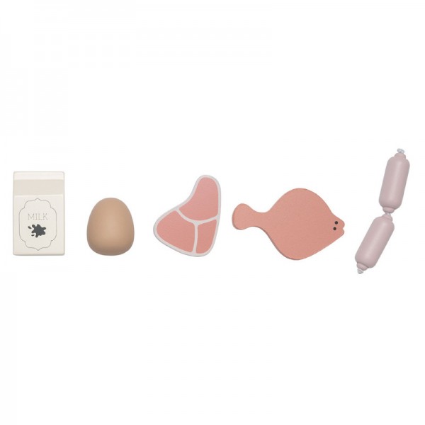 koordynację ręka–oko i motorykę małą – układanie produktów, sortowanie i pakowanie do torby,