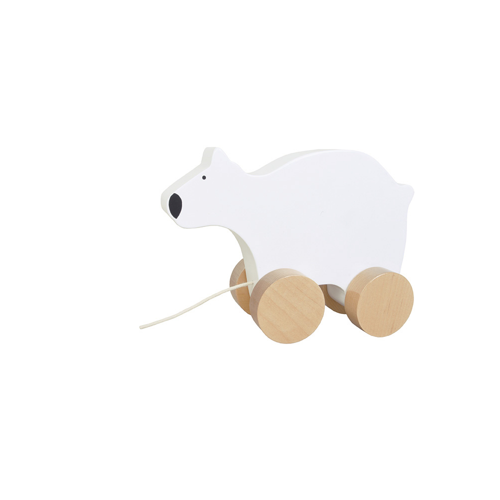 Uroczy drewniany miś polarny na sznureczku do ciągnięcia marki Jabadabado. Klasyczna zabawka drewniana znana od wieków i uwielbiana przez dzieci, w pięknym minimalistycznym skandynawskim wydaniu. Miś polarny skradnie serce Twemu dziecku i stanie się nieodzownym kompanem pieszych wycieczek. Zabawka do ciągnięcia ćwiczy koordynację ręka - oko, oraz pomaga w utrzymywaniu równowagi w nauce stawiania pierwszych kroków.