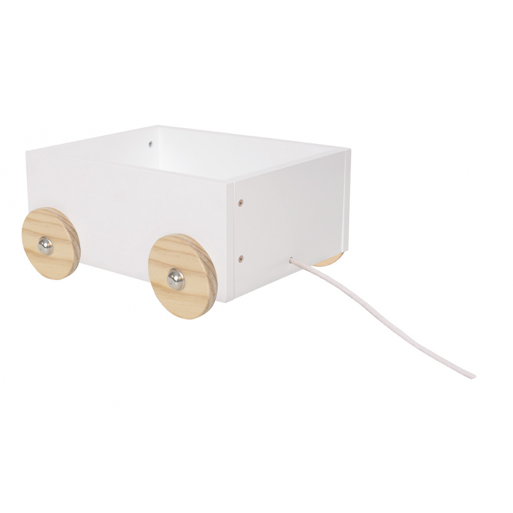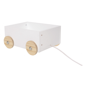 Drewniany pojemnik na zabawki na kółkach ze sznureczkiem, niezwykle funkcjonalny i bardzo elegancki - pomoże zapanować nad bałaganem w dziecięcych zabawek. Drewniana skrzynia na kółkach szwedzkiej marki Jabadabado jest w kolorze niezobowiązującej bieli, idealnie wpasuje się w każdy styl -a kólka w kolorze naturalnego drewna -jest to wręcz idealne połączenie. Dzięki pojemnikom na zabawki w prosty, i szybki sposób uporasz się z porządkiem w zabawkach dla dzieci, a dzięki sznureczkowi i kółkom -jest to niezwykle praktyczny sposób na przmieszczanie zabawek, tak aby zawsze mieć pod ręką swoje niezbędne zabawki. Dzięki swojemu stylowemu wyglądowi, ten drewniany pojemnik na zabawki będzie idealnym dodatkiem dekoracyjnym w pokoju Twojego malucha. Kółka nie pozostawiają żadnych śladów na podłodze.