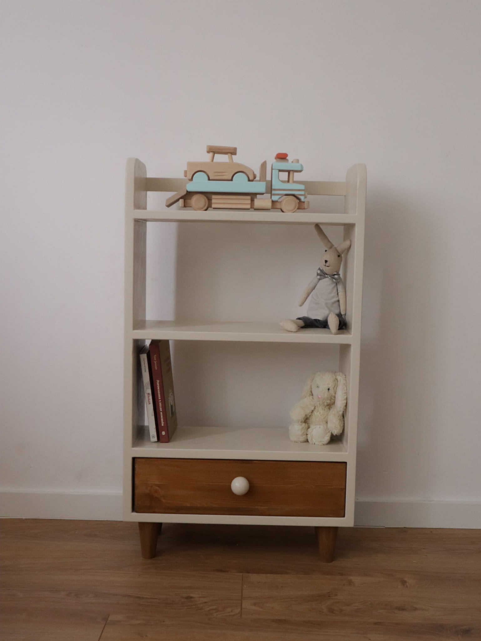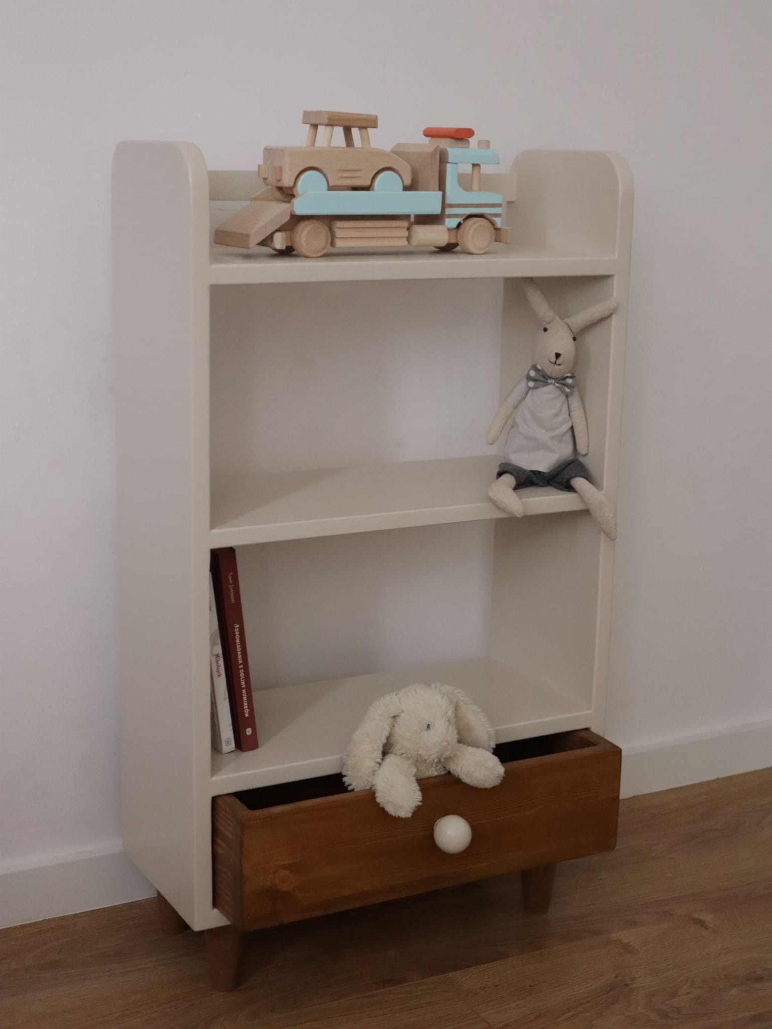 Drewniana bliblioteczka , regalik do pokoju dziecięcego . W całości wykonany z drewna sosnowego . Wpasuje sie w klimat nie jednego pokoju .