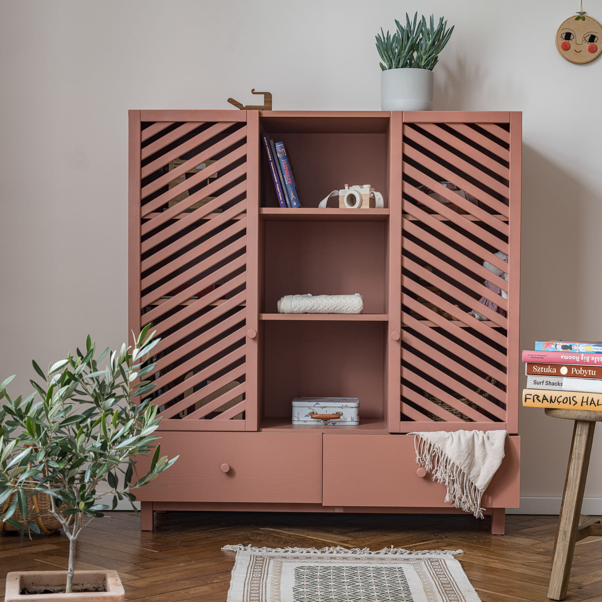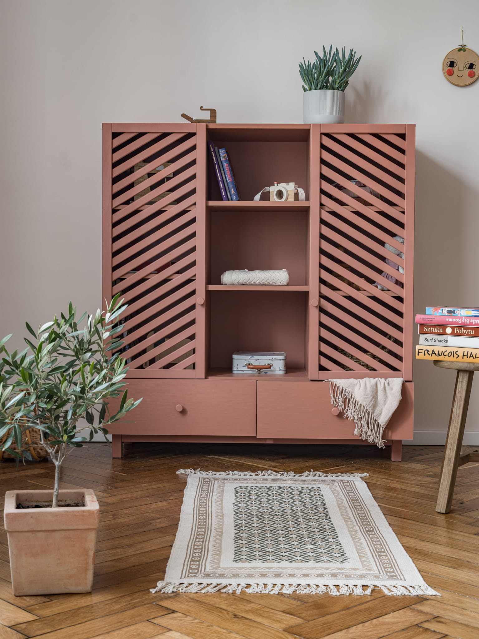 Gablotka, nie tylko dla dzieci :). Miejsce idealne do przechowywania książek, gier, puzzli i innych “gadżetów”. Pojemna szuflada oraz szafka zamykana na drzwi pozwolą na utrzymanie porządku. Ażurowy wygląd nadaje jej lekkości oraz oryginalności.