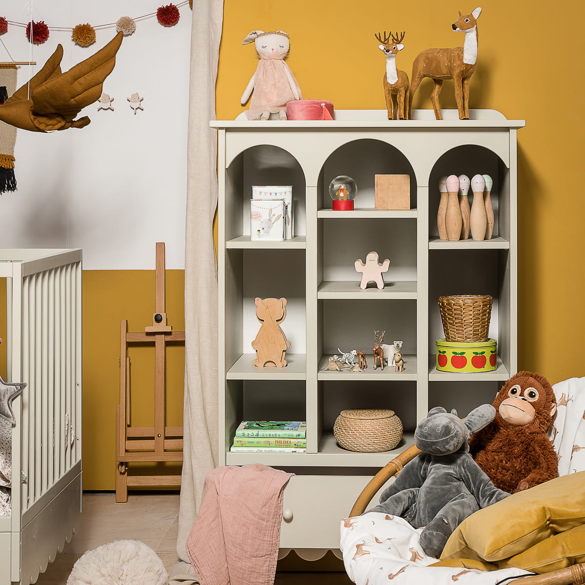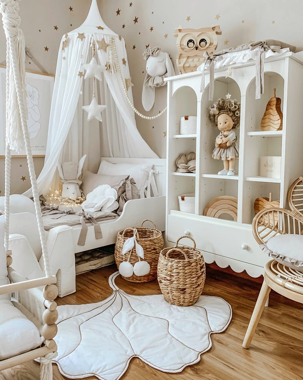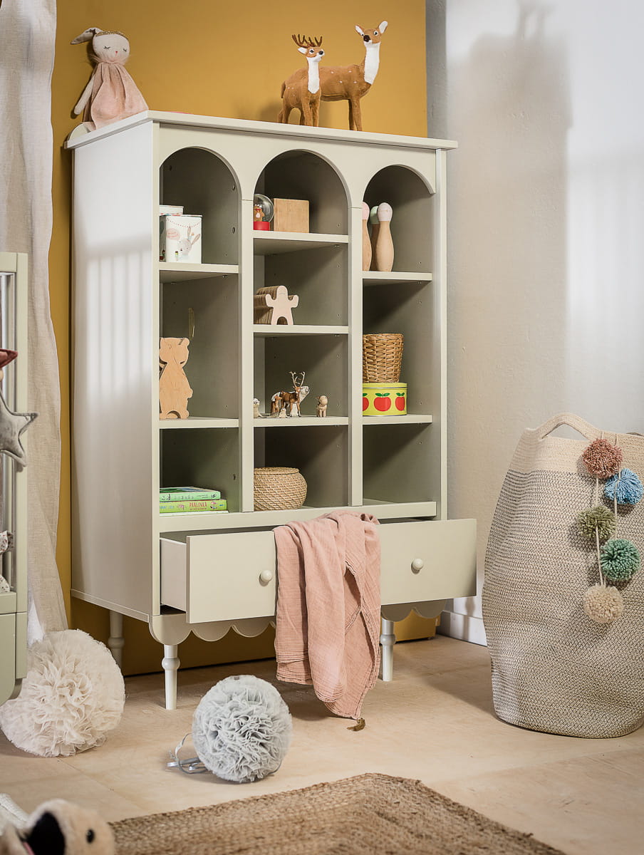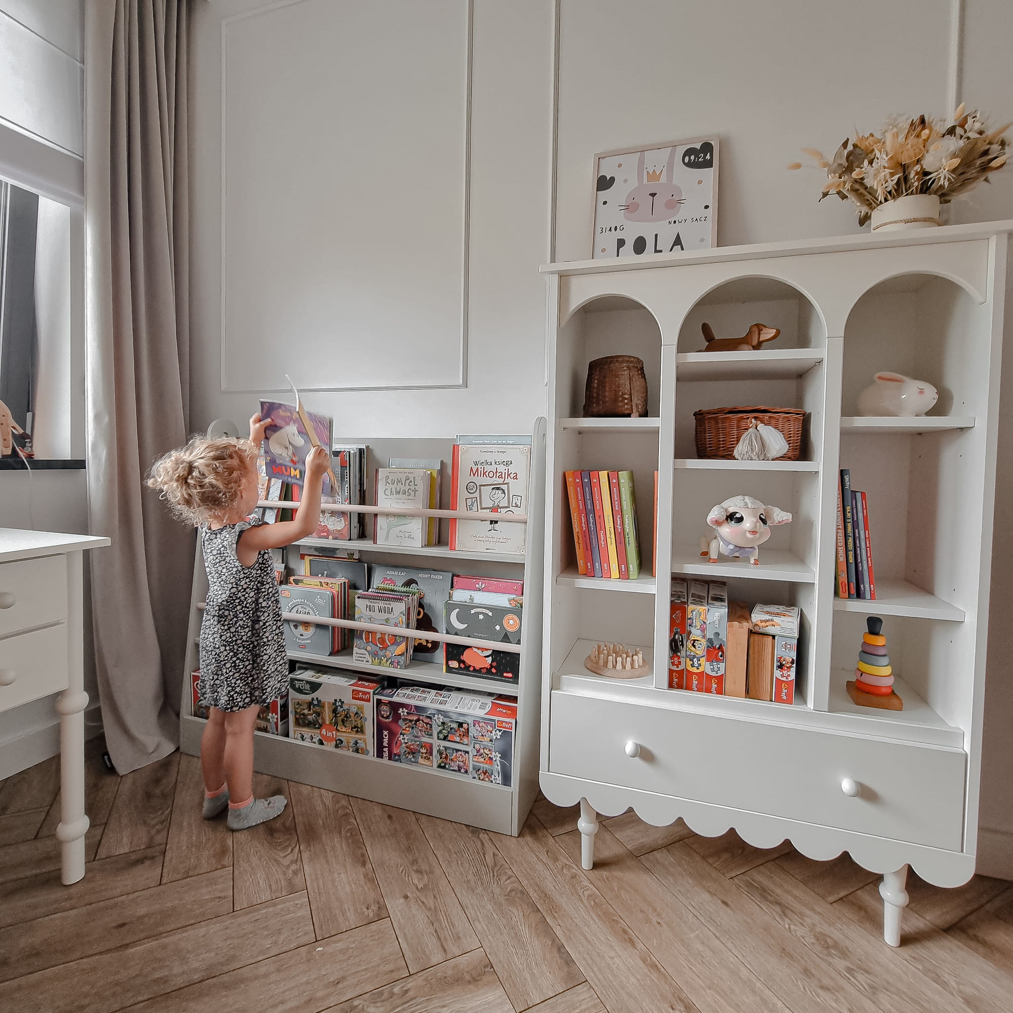 - Praktyczny i estetyczny design: Regał oferuje przestrzeń na książki, zabawki i dekoracje, dzięki czemu utrzymanie porządku staje się prostsze. Jego biały kolor dodaje wnętrzu lekkości i przytulności.