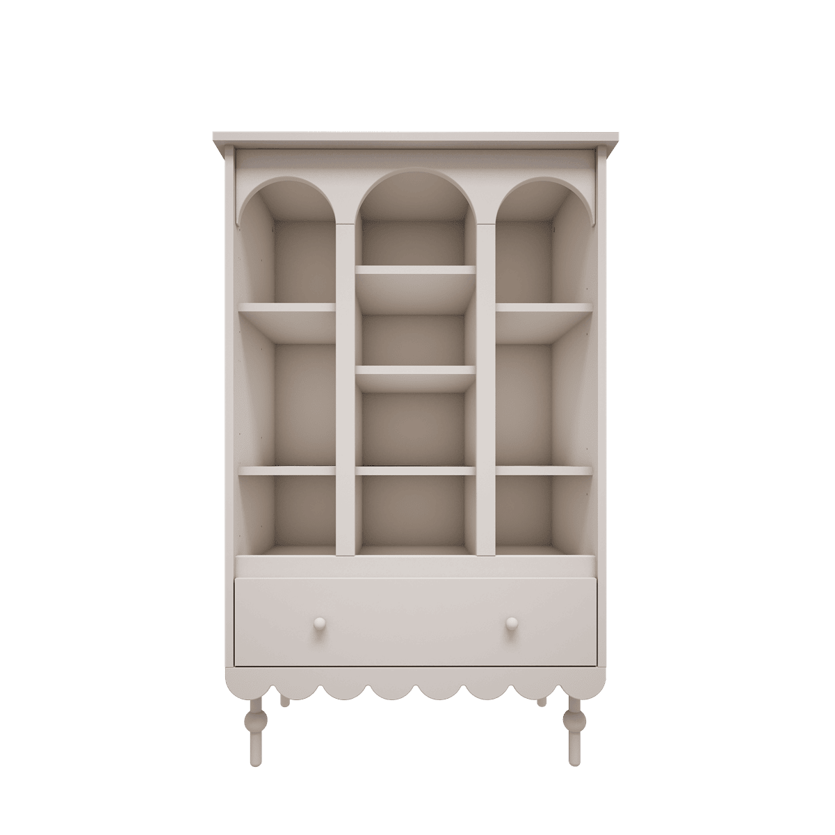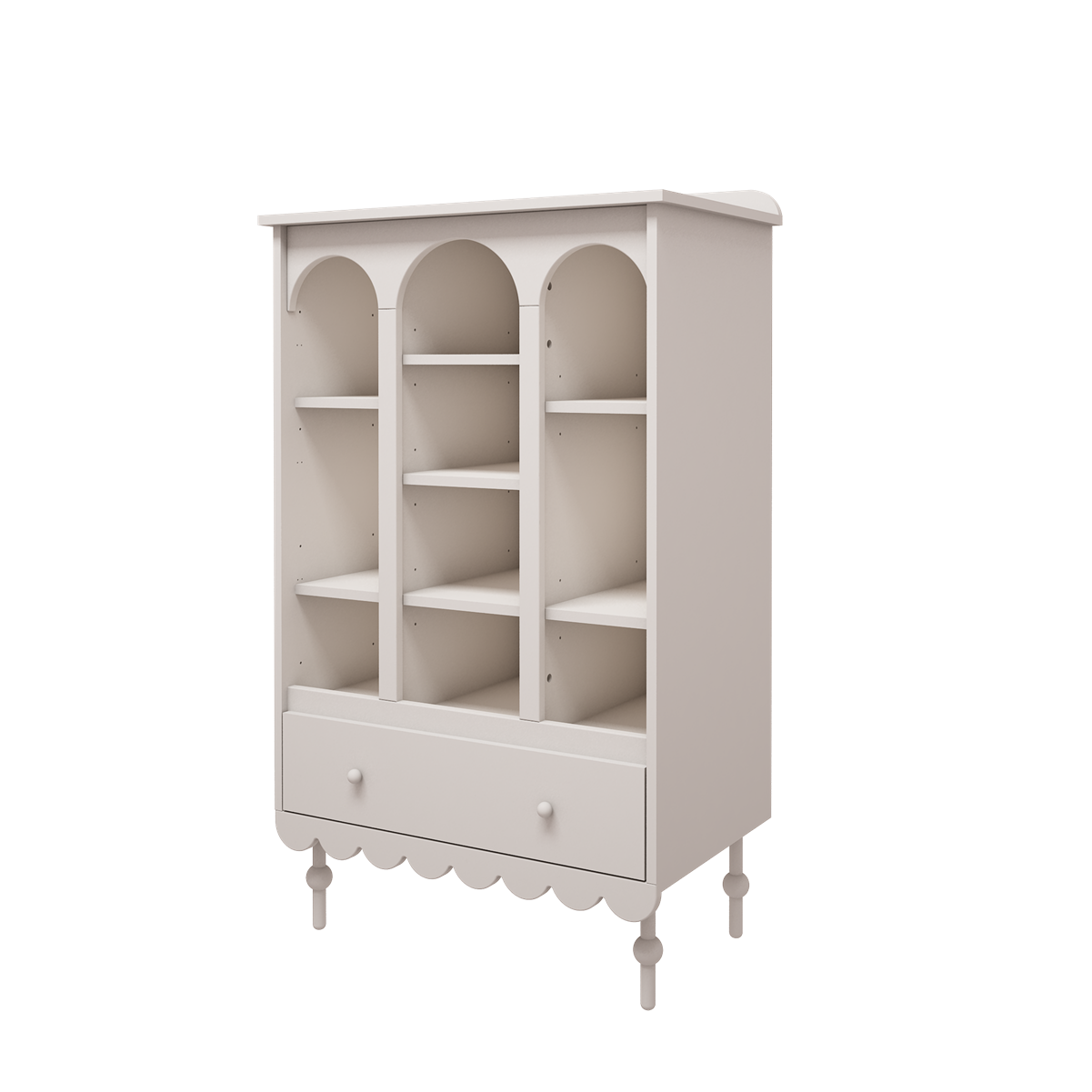 Regał Babushka Biały z kolekcji mebli dziecięcych Babushka to niezbędny dodatek do pokoju dziecięcego w romantycznym stylu retro.