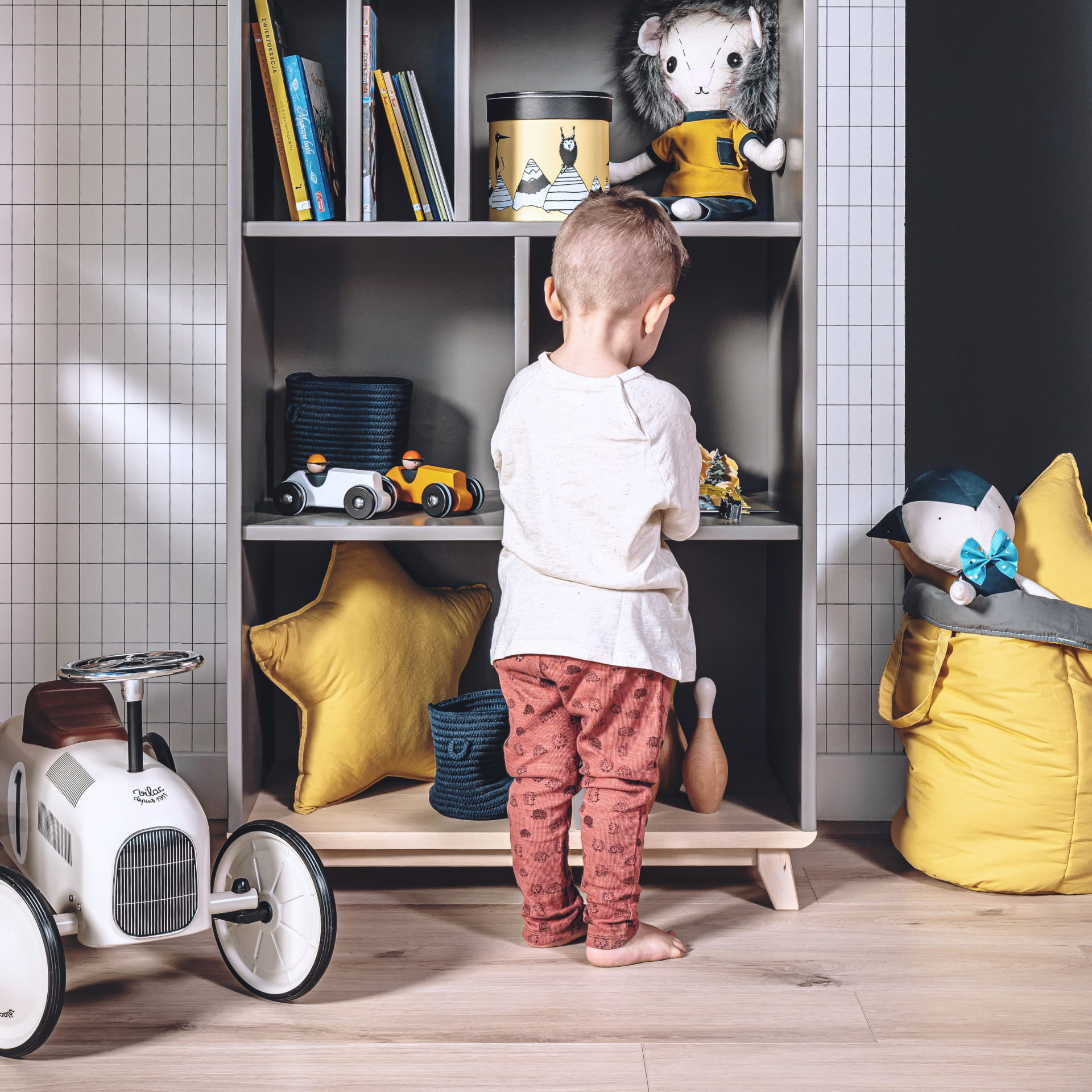 Drewniany regał z kolekcji Minimondo. Idealny do przechowywania i na zabawki.