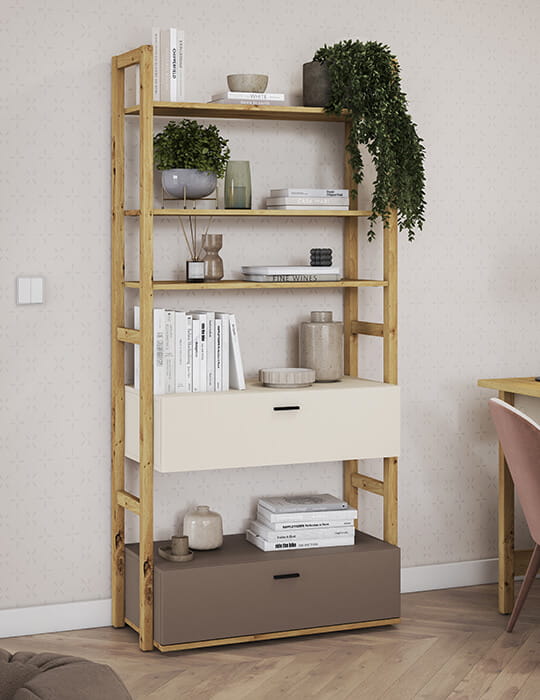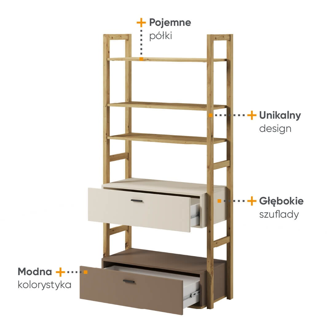 Drewniany regał szeroki do pokoju dziecka Lenny