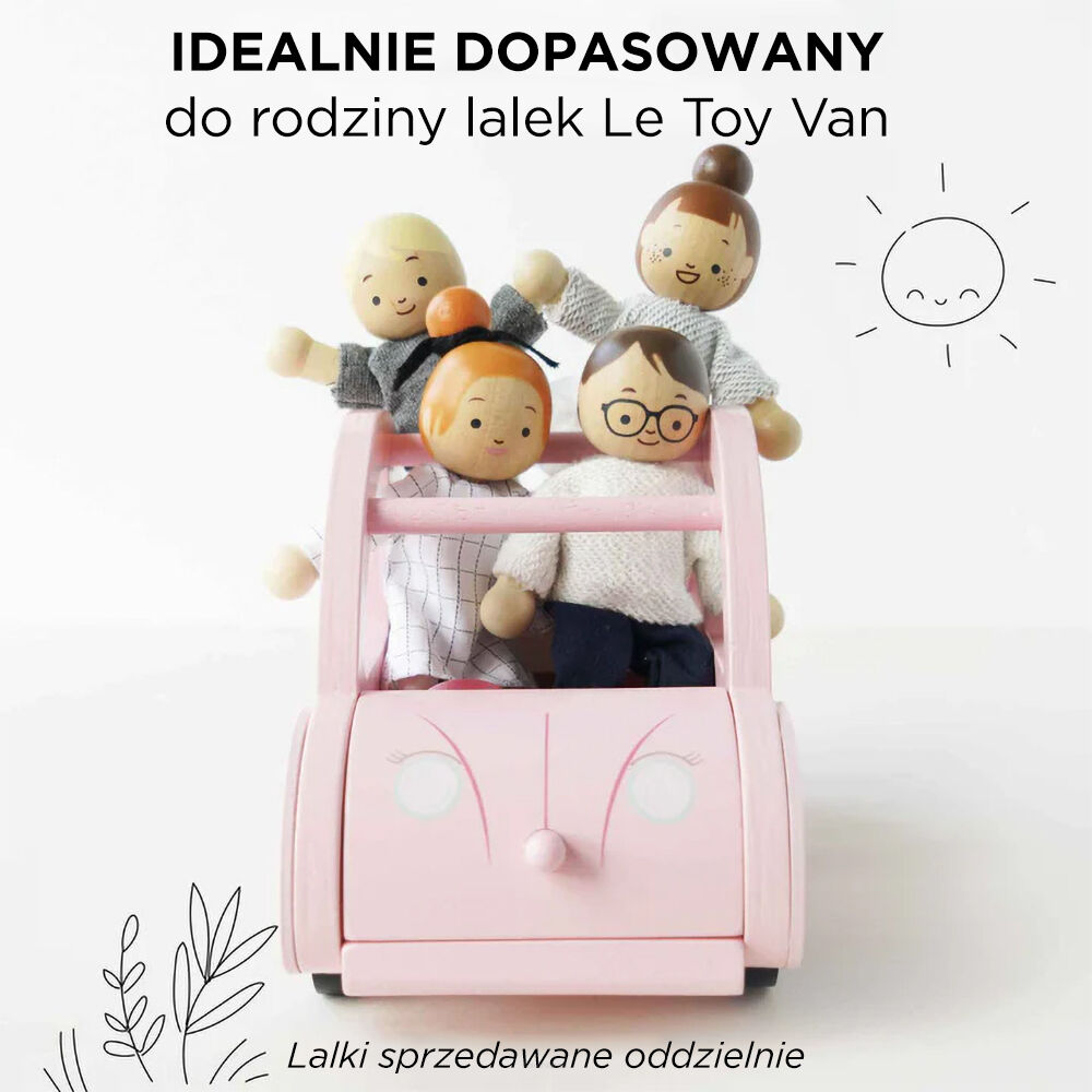 Drewniany różowy samochód retro Sophie, zabawka dla dzieci, auto Le Toy Van