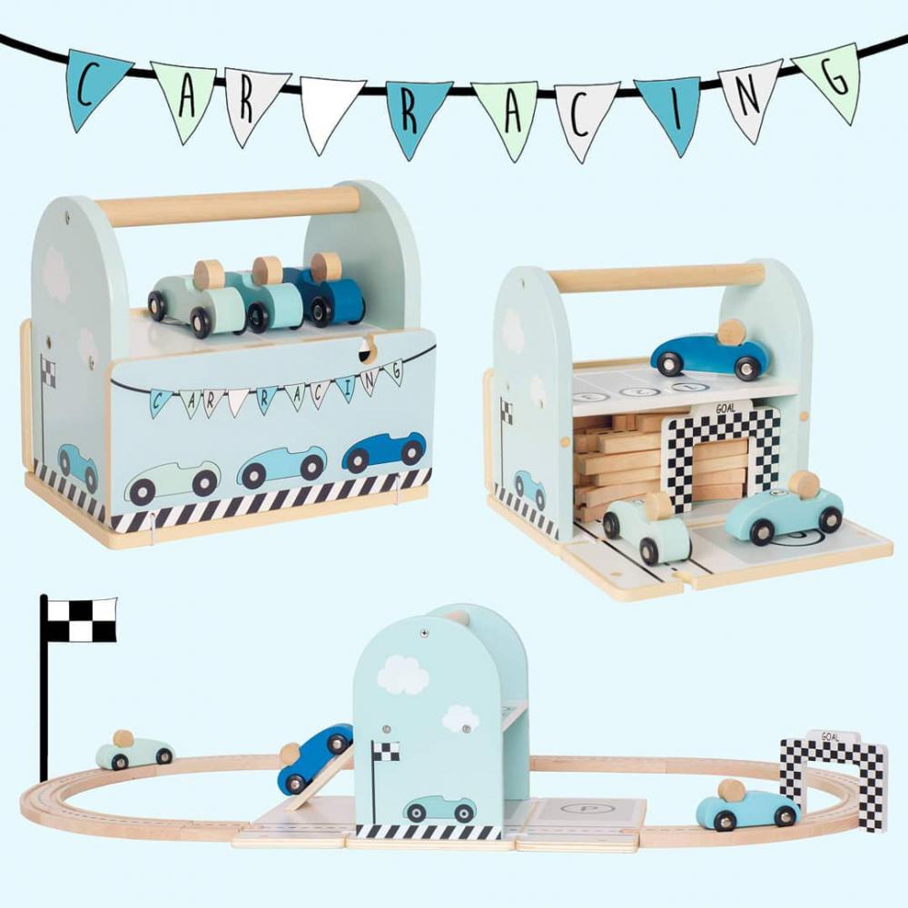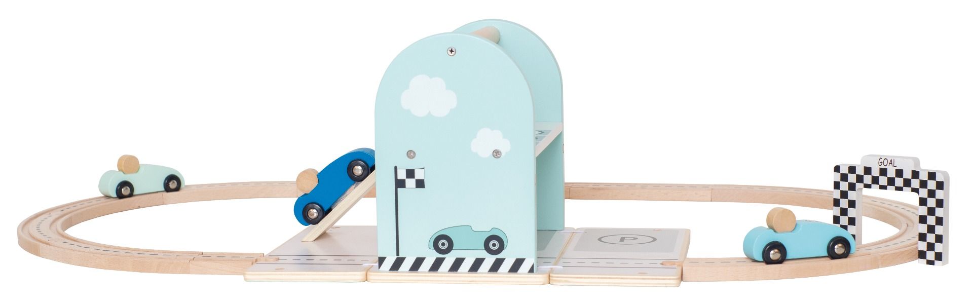 Drewniany tor wyścigowy z autami - zestaw zabawek dla dzieci Jabadabado