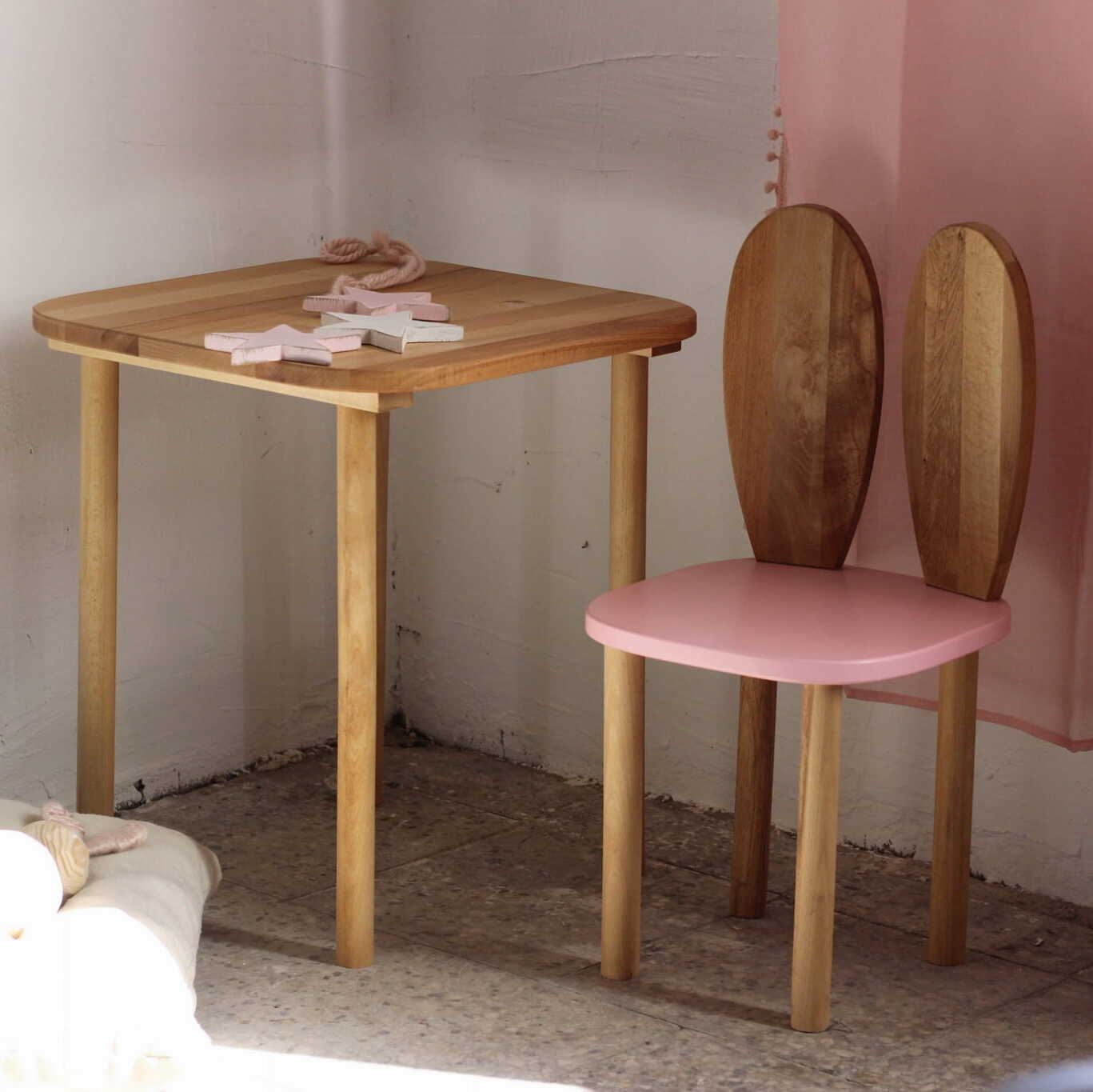 Zestaw Królik Wood to praktyczne i stylowe wyposażenie dziecięcego pokoju, które łączy naturalne drewno z nowoczesnym designem. Składa się z kwadratowego stolika oraz uroczego krzesełka z oparciem w kształcie króliczych uszu. Idealny dla dzieci do 6 roku życia.