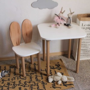 Drewniany zestaw dla dzieci stolik + krzesełko Królik Wood