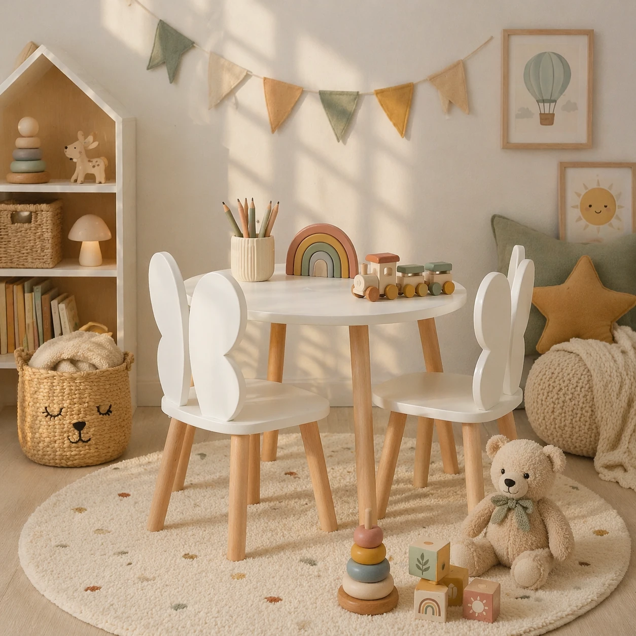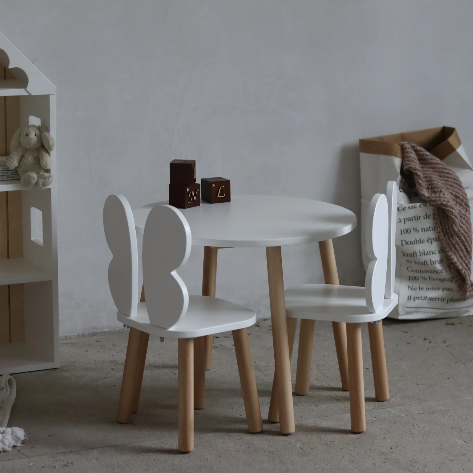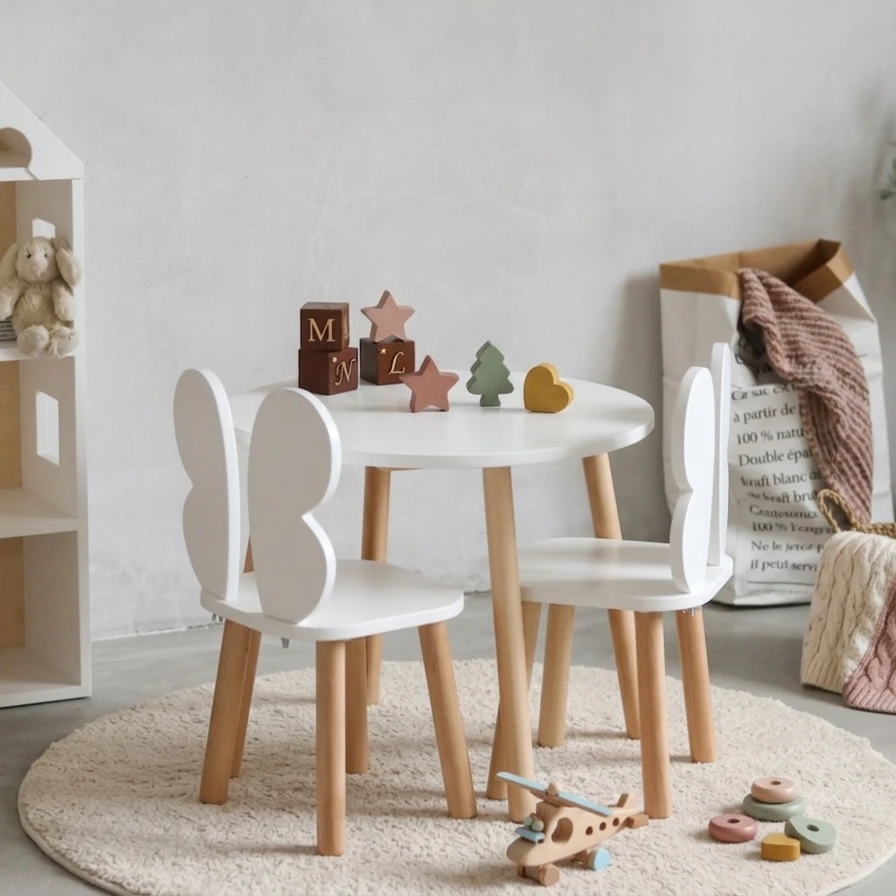 Stolik dziecięcy z krzesełkami motylkami – styl skandynawski
