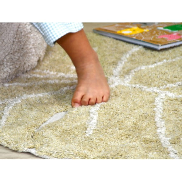 Urocza mini wersja dywanu Monstera w kolorze oliwkowym. Doskonale sprawdzi się w pokoju dziecka.