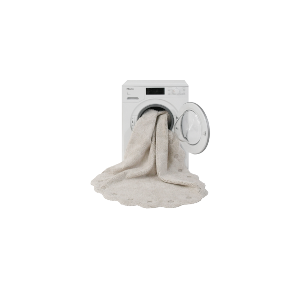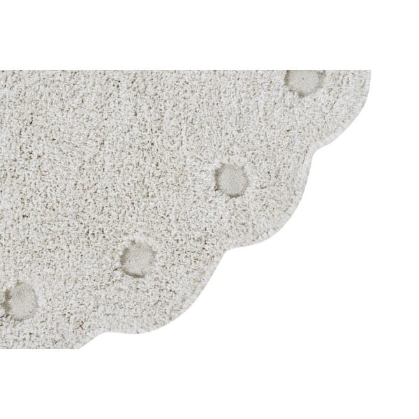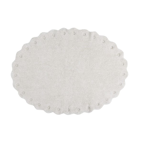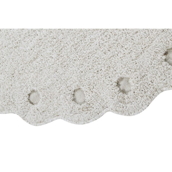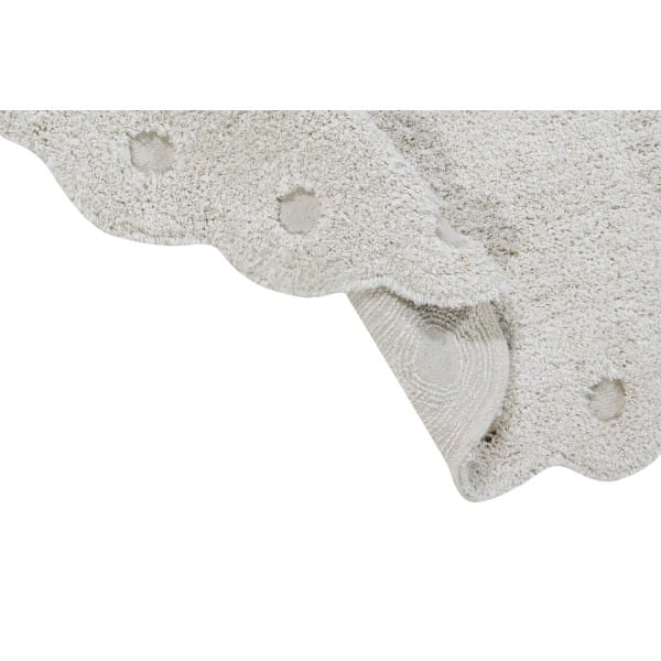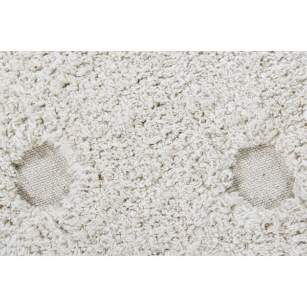 Dywan Picone Ivory wykonany jest z mieszanki przędzy w kolorze kości słoniowej i naturalnym, z zaokrąglonymi krawędziami dookoła i gołymi plamami ukazującymi podstawę z naturalnego płótna.