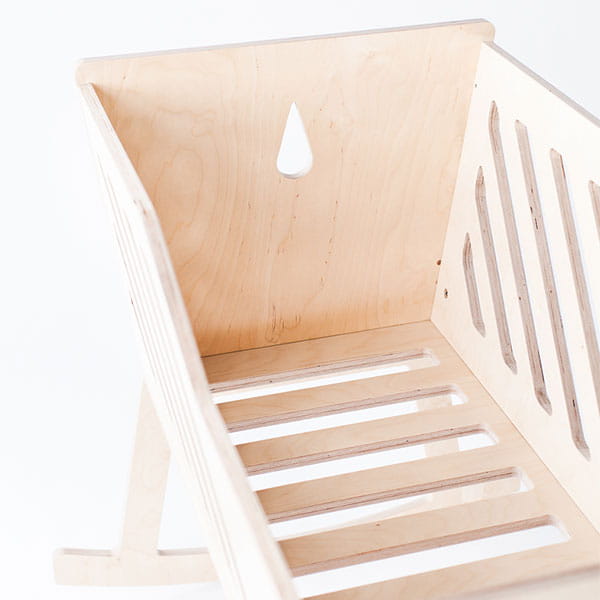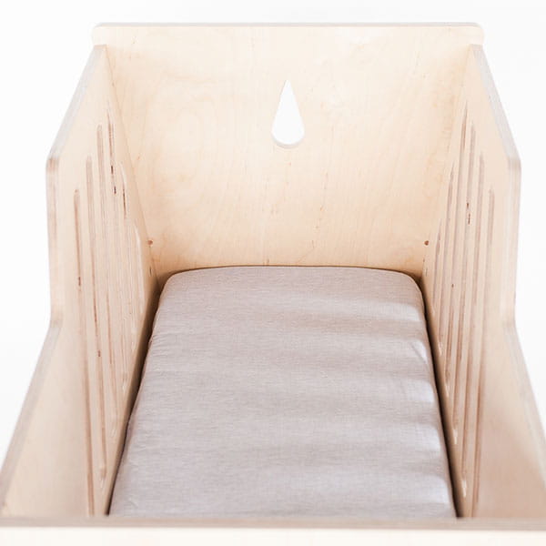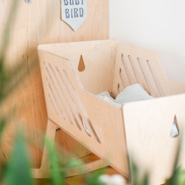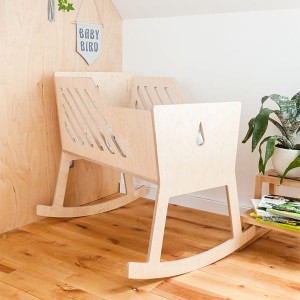 Charakter warstwowej struktury sklejki widocznej z jej boku dodaje jej wyjątkowości i sprawia, że pięknie wpasowuje się we wszelkie domowe wnętrza. Projektując kołyskę ze sklejki myśleliśmy o meblu, który idealnie kołysząc i tuląc dziecko do snu, będzie nie tylko spełniał swoją funkcję jako mebel ale też piękny dodatek do nowoczesnych wnętrz.