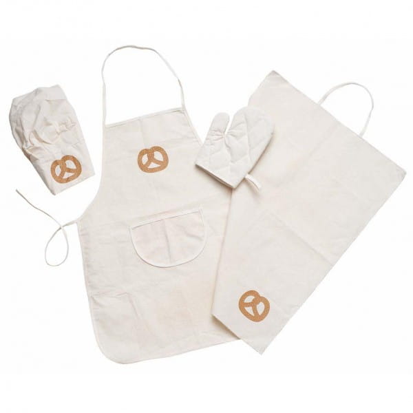 Zestaw jest trwały, wykonany z wysokiej jakości bawełny i zaprojektowany tak, aby służył przez długie lata. Idealny zarówno do zabawy w domu, jak i jako prezent dla małego miłośnika gotowania. Do kompletu polecamy także drewniany wałek kuchenny dla dzieci, który jeszcze bardziej urozmaici zabawę.