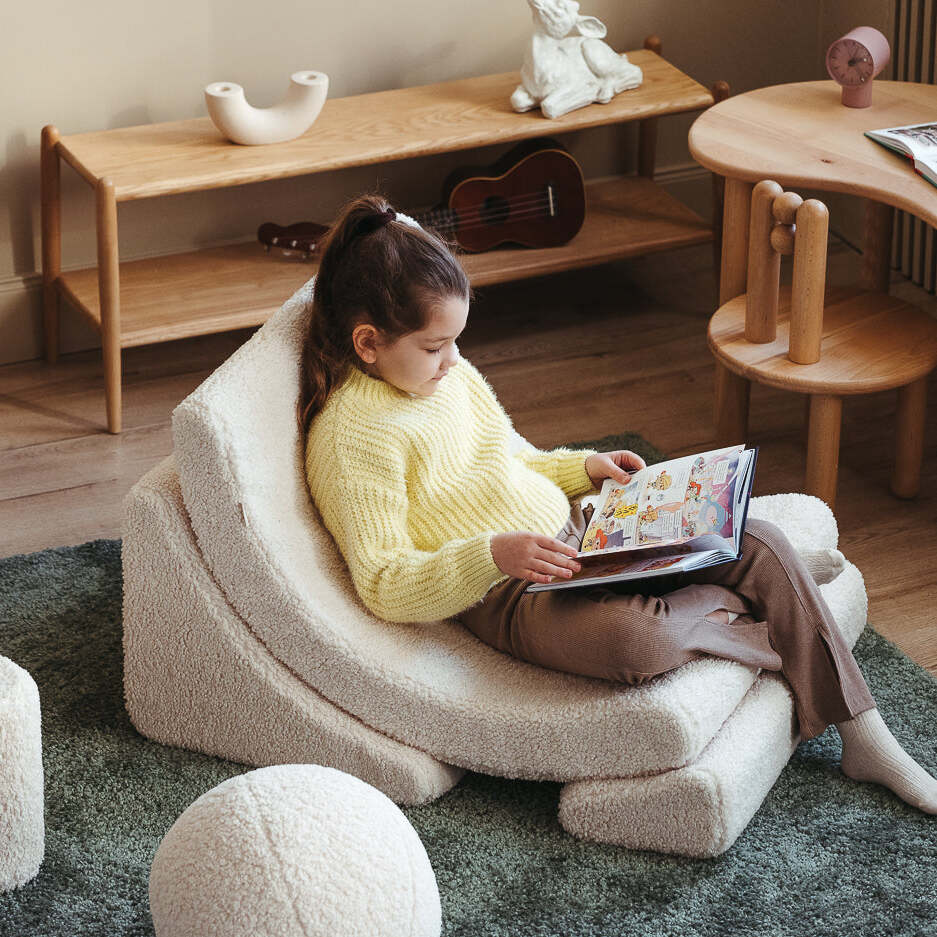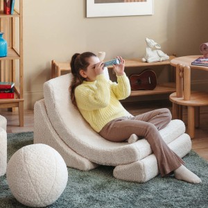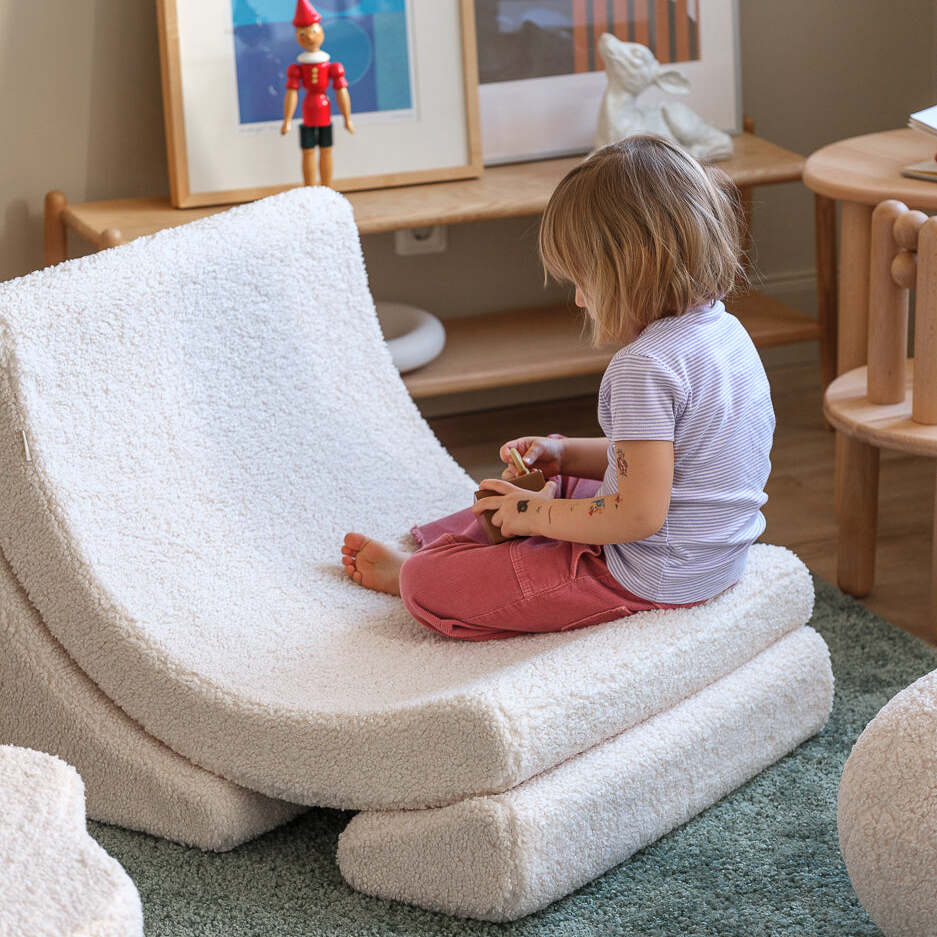 Ten fotel dla dziecka składa się z trzech lekkich, miękkich modułów, które można dowolnie przestawiać, układać i budować z nich różne formy. Dzieci pokochają możliwość samodzielnego składania i rozkładania swojego fotelika – to nie tylko wygodne siedzisko, ale i forma zabawy rozwijająca kreatywność.