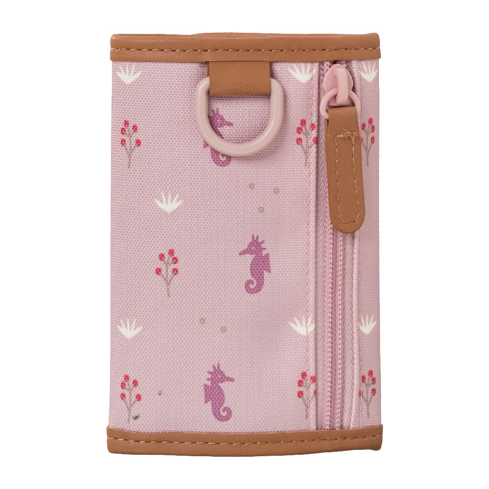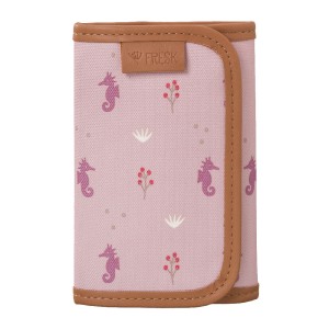 Portfel z praktycznymi kieszonkami , dodatkową kieszonką na suwak i zapięciem na rzep. Posiada dodatkowo metalowe kółko do przypięcia kluczy.