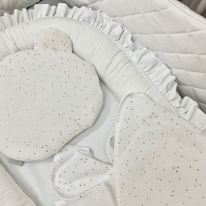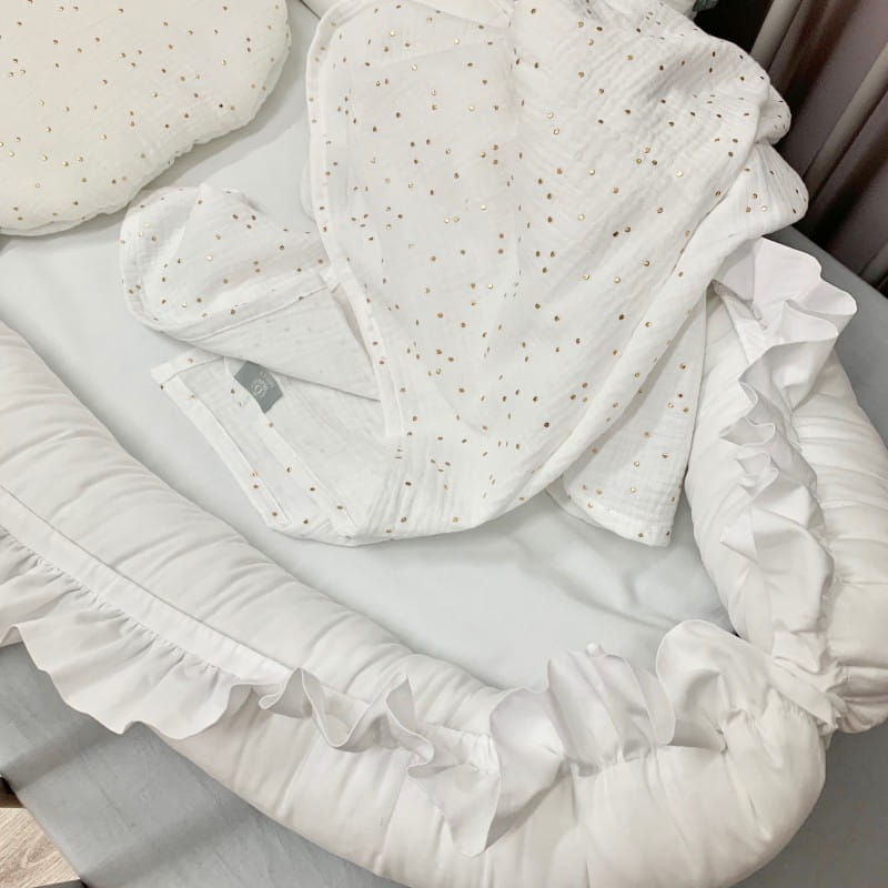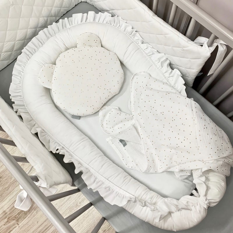 Gniazdko kokon niemowlęcy Perłowa Biel z Falbanką