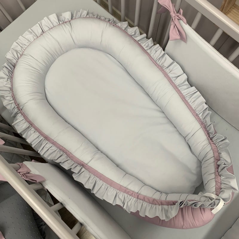 Gniazdko kokon niemowlęcy Szaro Lawendowy z Falbanką