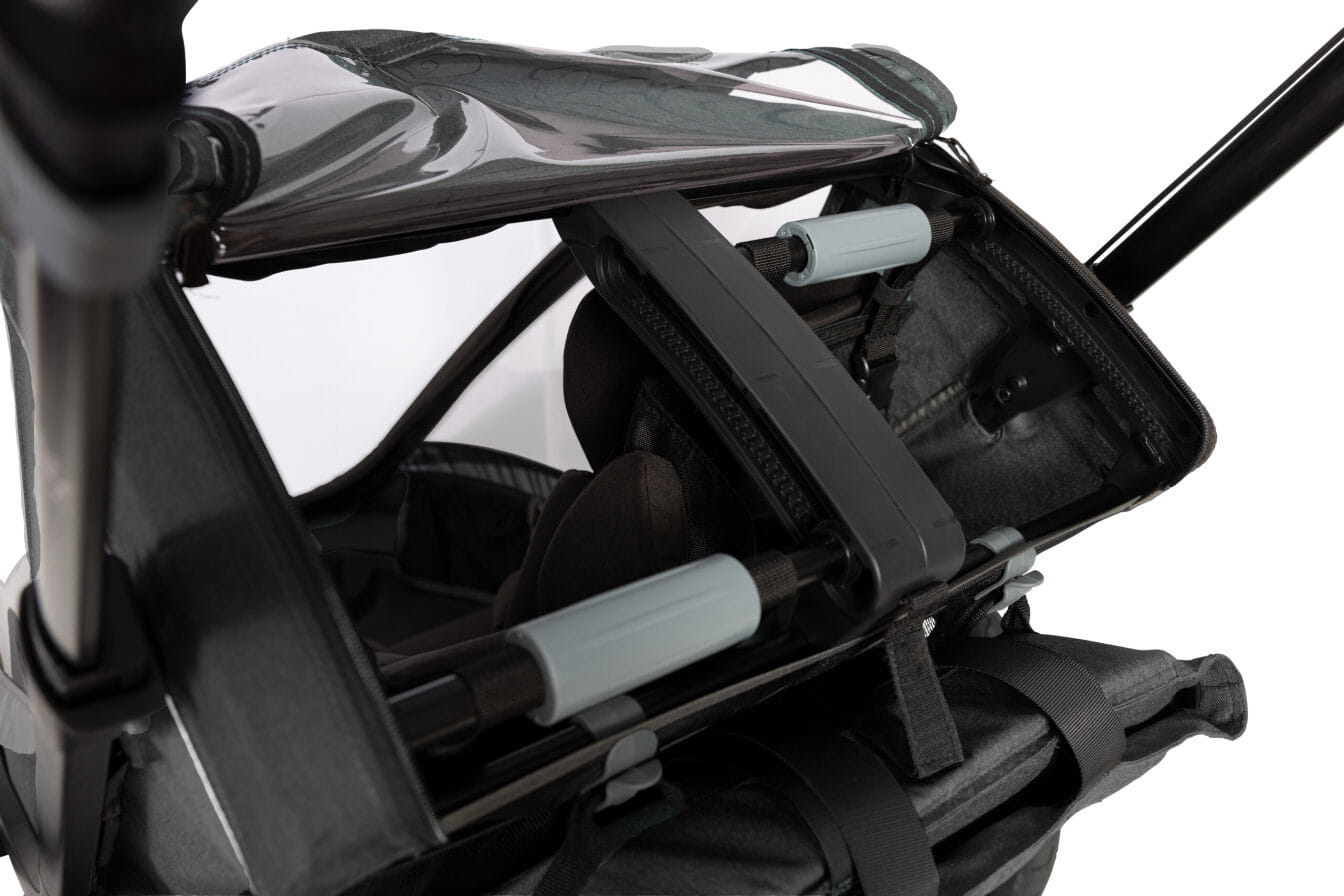 Dzięki funkcji 2w1 może pełnić rolę zarówno przyczepki rowerowej, jak i wózka spacerowego, oferując wszechstronność, komfort i niezawodne zabezpieczenia.