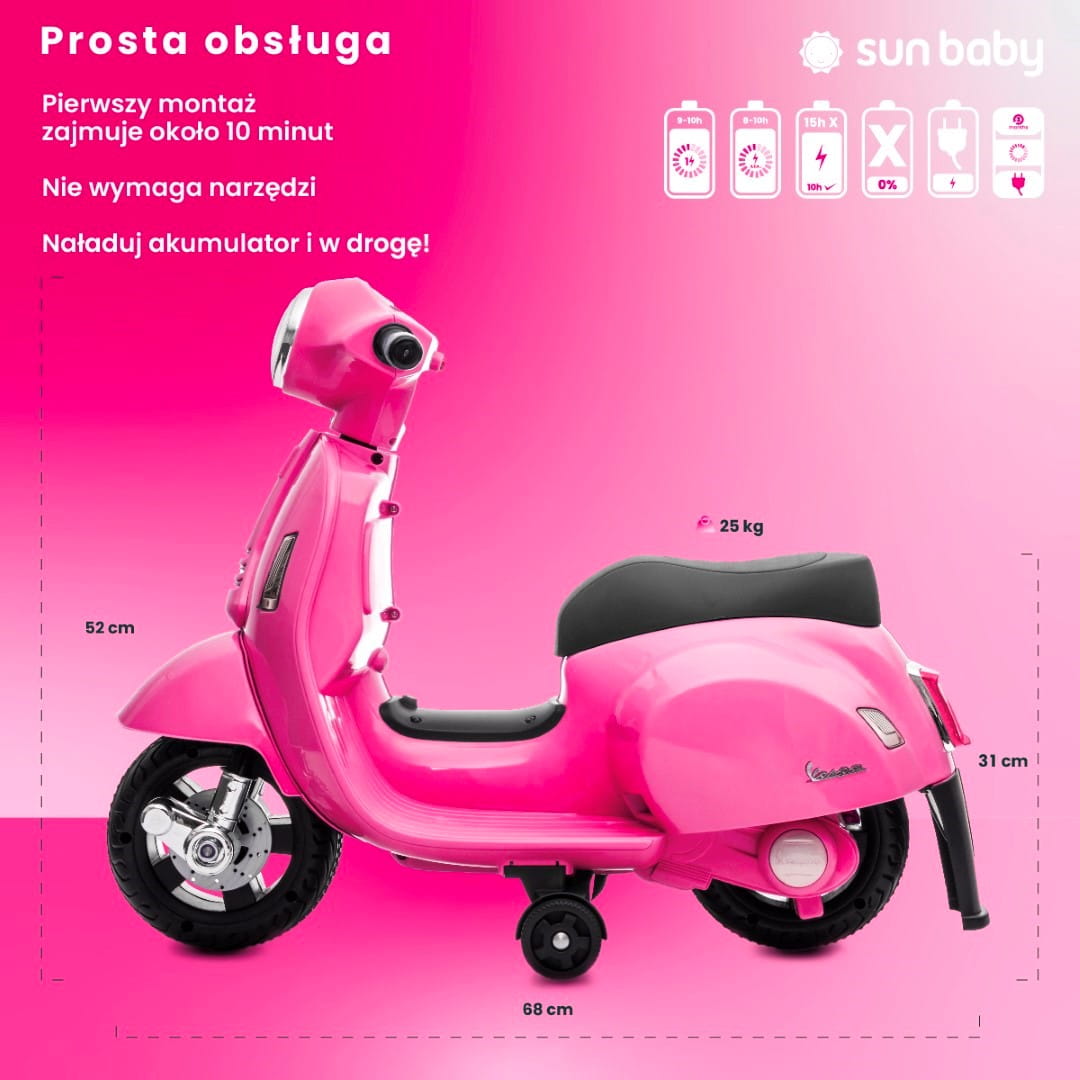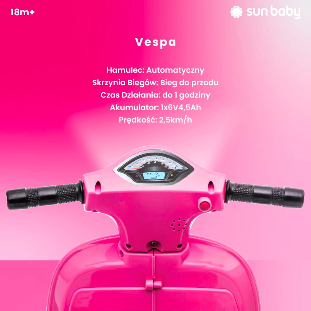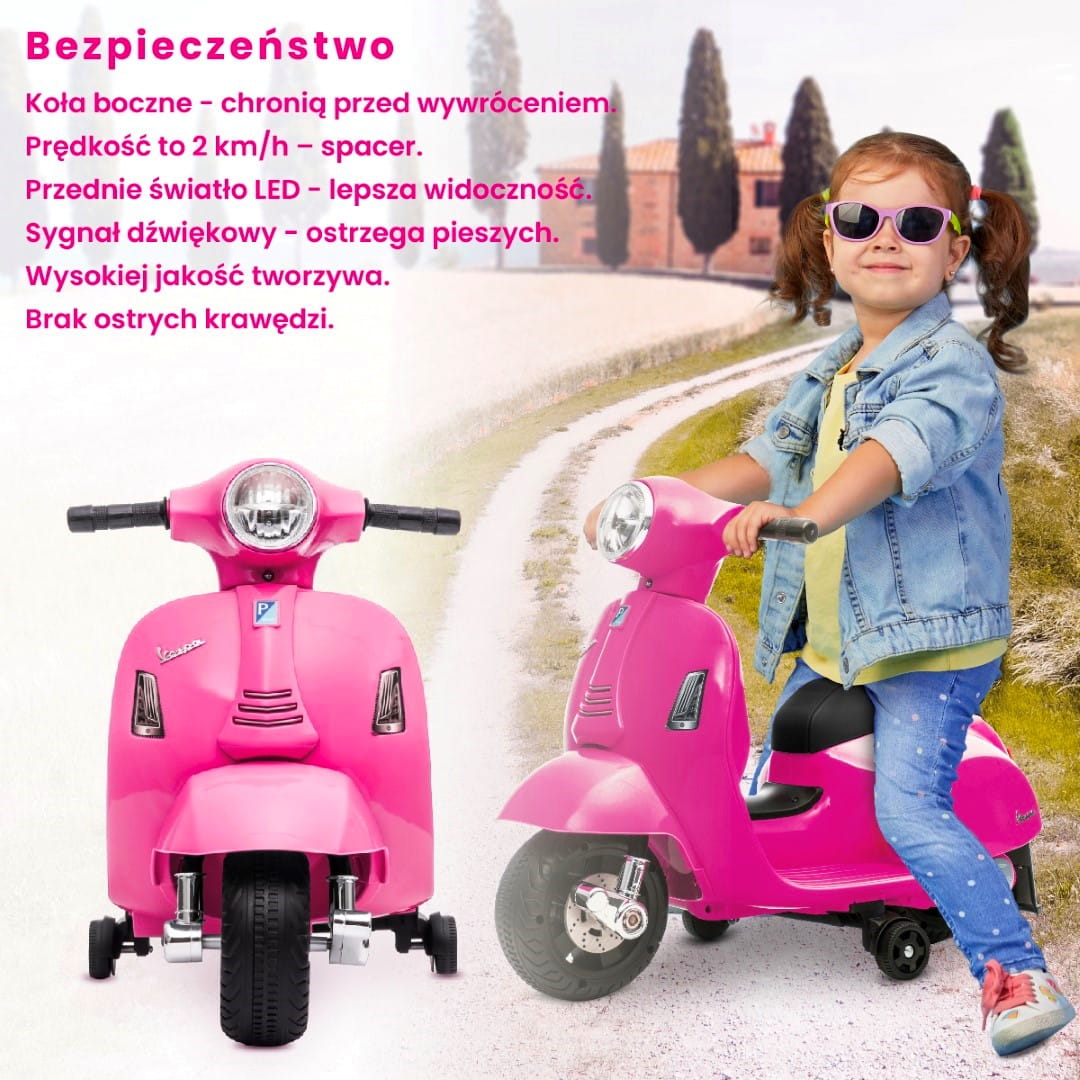 Jeździk Vespa z napędem elektrycznym Vespa to po polsku osa. Osa bzyczy i żądli. Nasza Vespa jest piękna. Ma piękny kolor. Ma piękny wygląd. Nasza Vespa nie żądli i nie bzyczy, nasza Vespa jest piękna, reszta się nie liczy ;-)