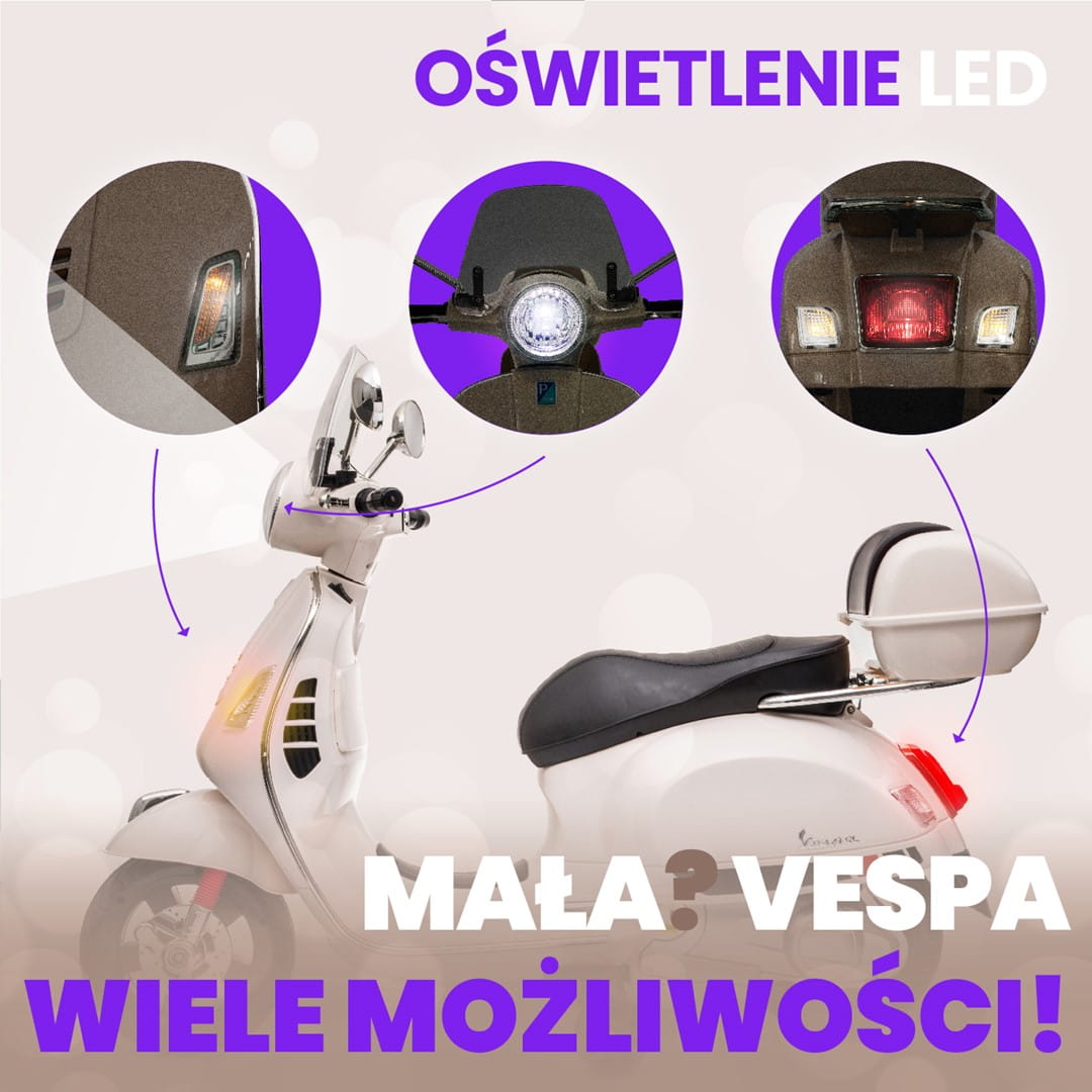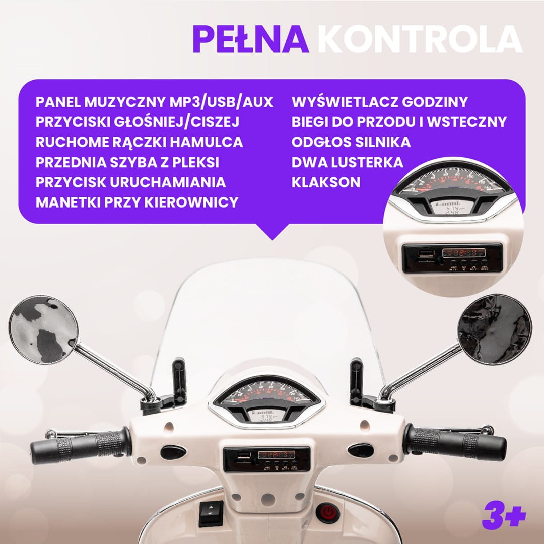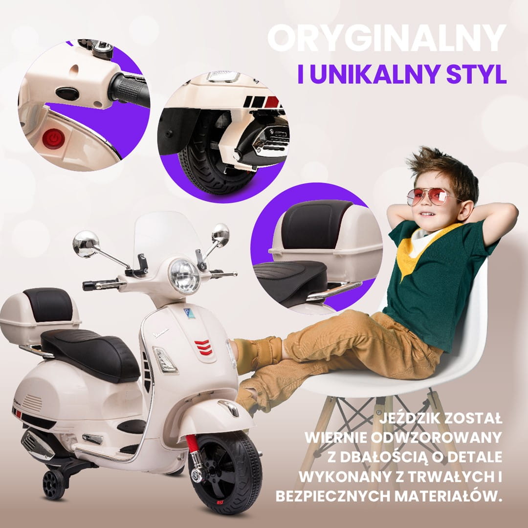 Jeździk akumulatorowy Scooter Vespa z kuferkiem biały