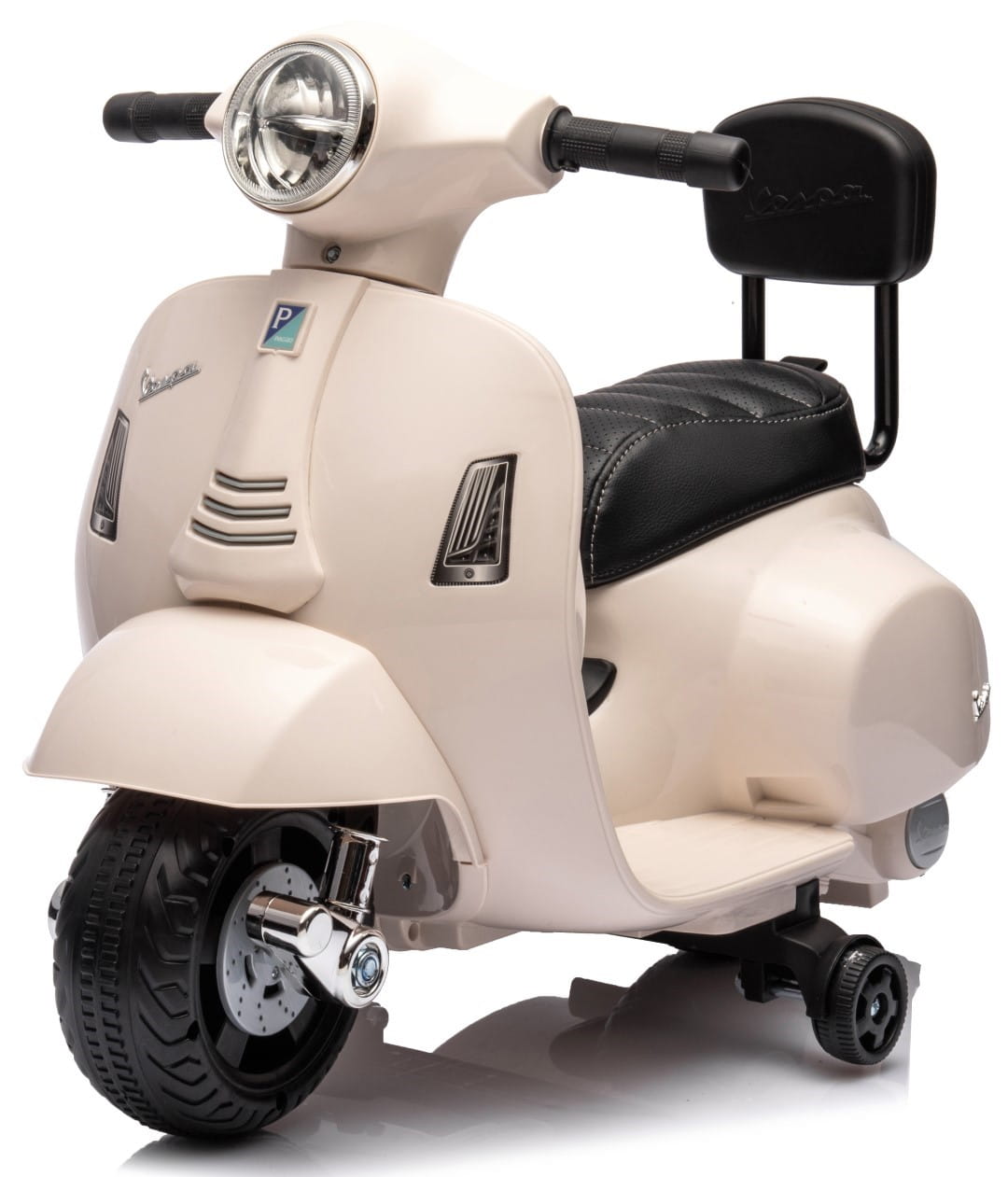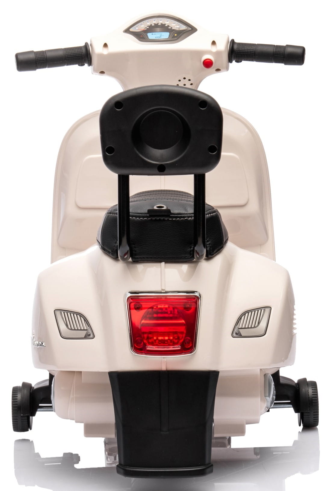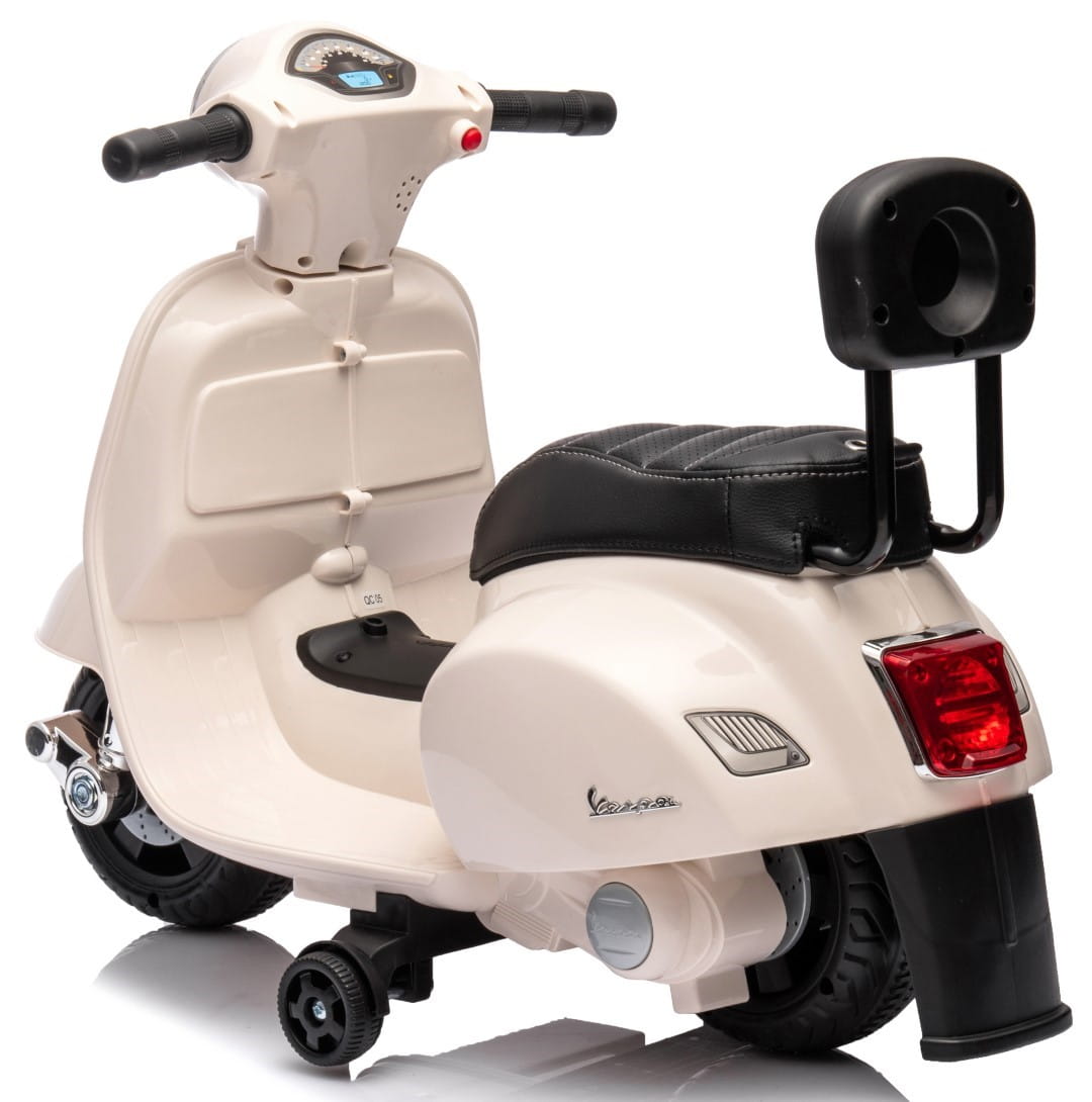Jeździk akumulatorowy Scooter Vespa z siedzeniem z ekoskóry z przeszyciem i oparciem biały