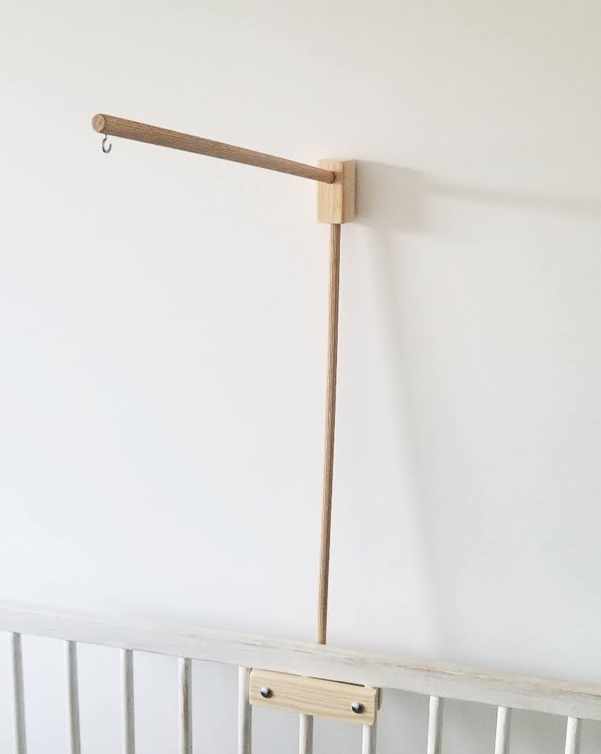 W ofercie sklepu dostępny jest drewniany uchwyt z pozytywką, idealnie dopasowany do karuzeli Safari – tworzy razem z nią piękny zestaw nad łóżeczko.