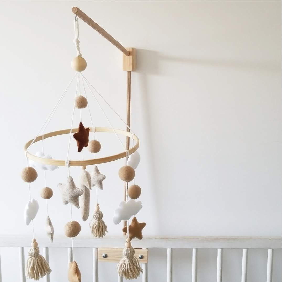 Wiszące elementy stymulują rozwój percepcji wzrokowej dziecka, a cała kompozycja wprowadza do pokoju przytulny i spokojny klimat.