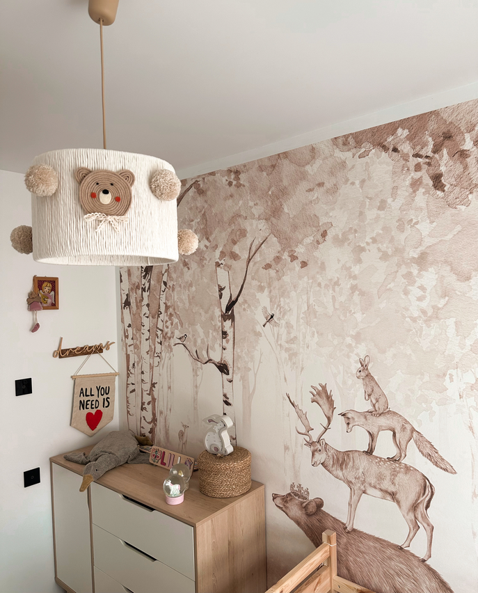 Dzięki naturalnym materiałom, uroczemu motywowi misiów i stonowanej kolorystyce wprowadza do pokoju dziecka ciepło, przytulność i wyjątkowy charakter.