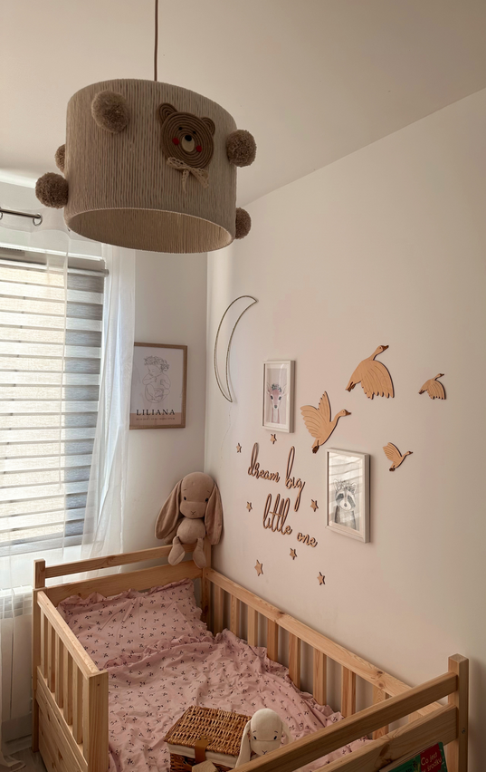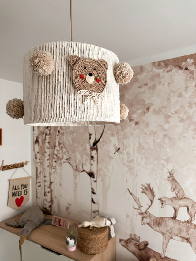 Lampa sufitowa „Miś Teddy” to połączenie rękodzieła, naturalnych materiałów i delikatnego wzornictwa.