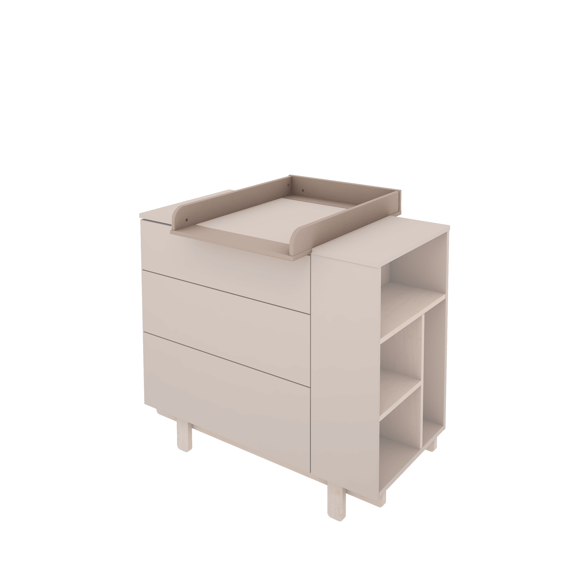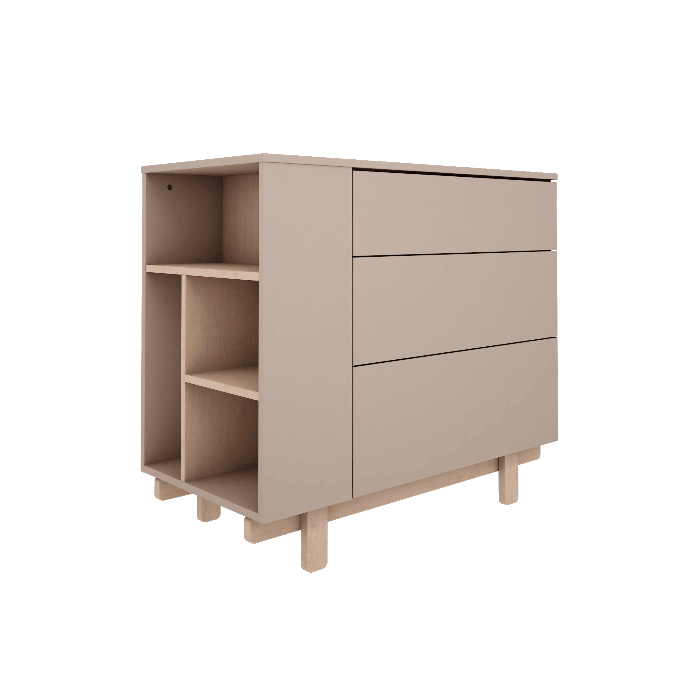Ta piękna komoda z kolekcji mebli dziecięcych Basic w kolorze trufli, wzbogacona elementami z naturalnego drewna, to idealne połączenie stylu i praktyczności.