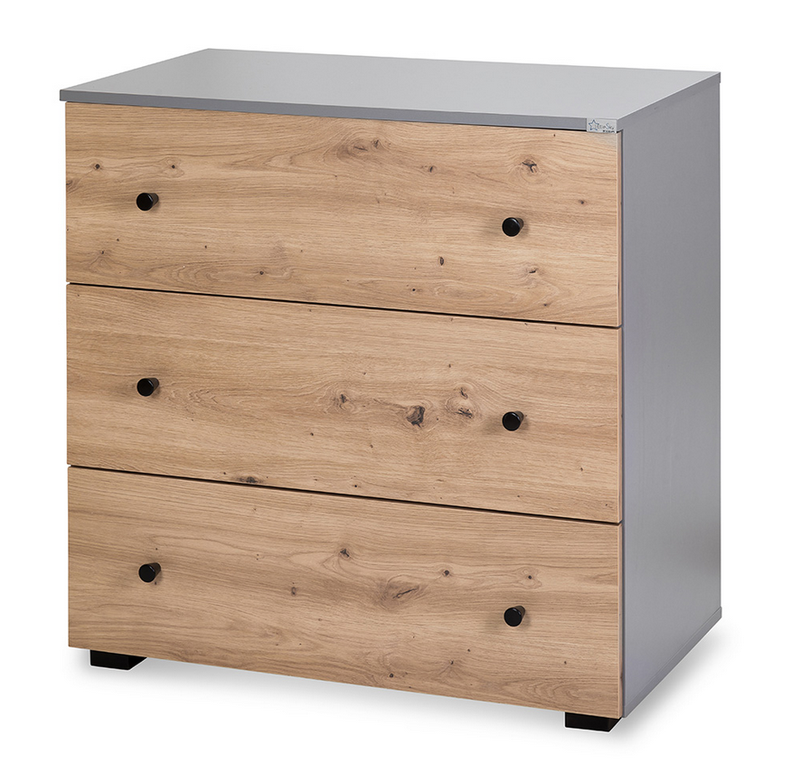 Komoda PAULINE 3-szuflad – grafit + dąb – stylowa i funkcjonalna do pokoju dziecka