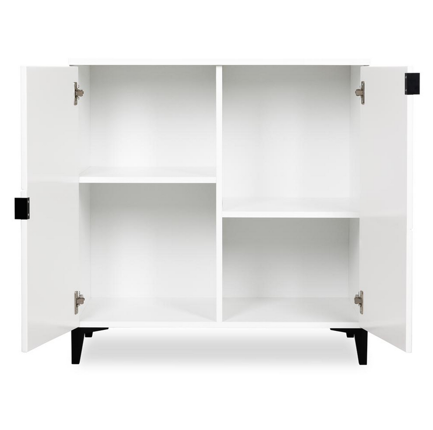 Komoda mała MIA została zaprojektowana tak, aby maksymalnie wykorzystać przestrzeń przy ograniczonym rozmiarze – jej wymiary to ~83 cm szerokości, 80 cm wysokości i 45 cm głębokości, co czyni ją idealną do mniejszych pokoi dziecięcych. Wnętrze wyposażone jest w dwie pojemne półki z możliwością regulacji wysokości, dzięki czemu łatwo dopasujesz przestrzeń do swoich potrzeb.