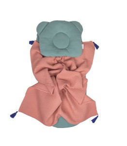 Zestaw prześcieradło + poduszka z wgłębieniem pod główkę + kocyk do wózka