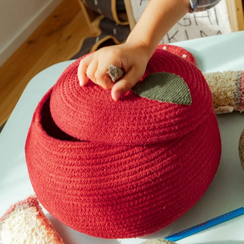 Kosz Jabłko Lorena Canals to oryginalny element wyposażenia dziecięcego pokoju, który łączy funkcjonalność z designerskim wyglądem. Wykonany ręcznie z bawełny organicznej, kosz w kształcie jabłka zachwyca swoim urokiem i doskonale sprawdza się jako pojemnik na zabawki, klocki, ubranka czy inne dziecięce akcesoria.