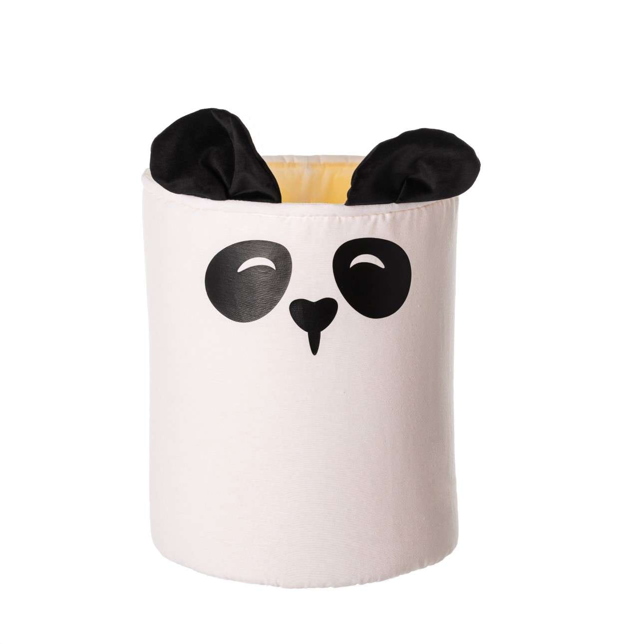 Fantazyjny pojemnik na zabawki z motywem misia pandy. Kosz – panda posiada urocze uszka wykonane z mięciutkiej tkaniny velvet, dzięki którym zachwyci twoją pociechę. Pozwoli utrzymać porządek w pomieszczeniu oraz posłuży jako dekoracja do pokoju dziecka. Jest lekki i bezpieczny w użytkowaniu, a także łatwy w utrzymaniu czystości, ponieważ nadaje się do prania w pralce. Do kompletu polecamy drugi, mniejszy kosz z tym samym motywem. Poznaj cały Happy Band!