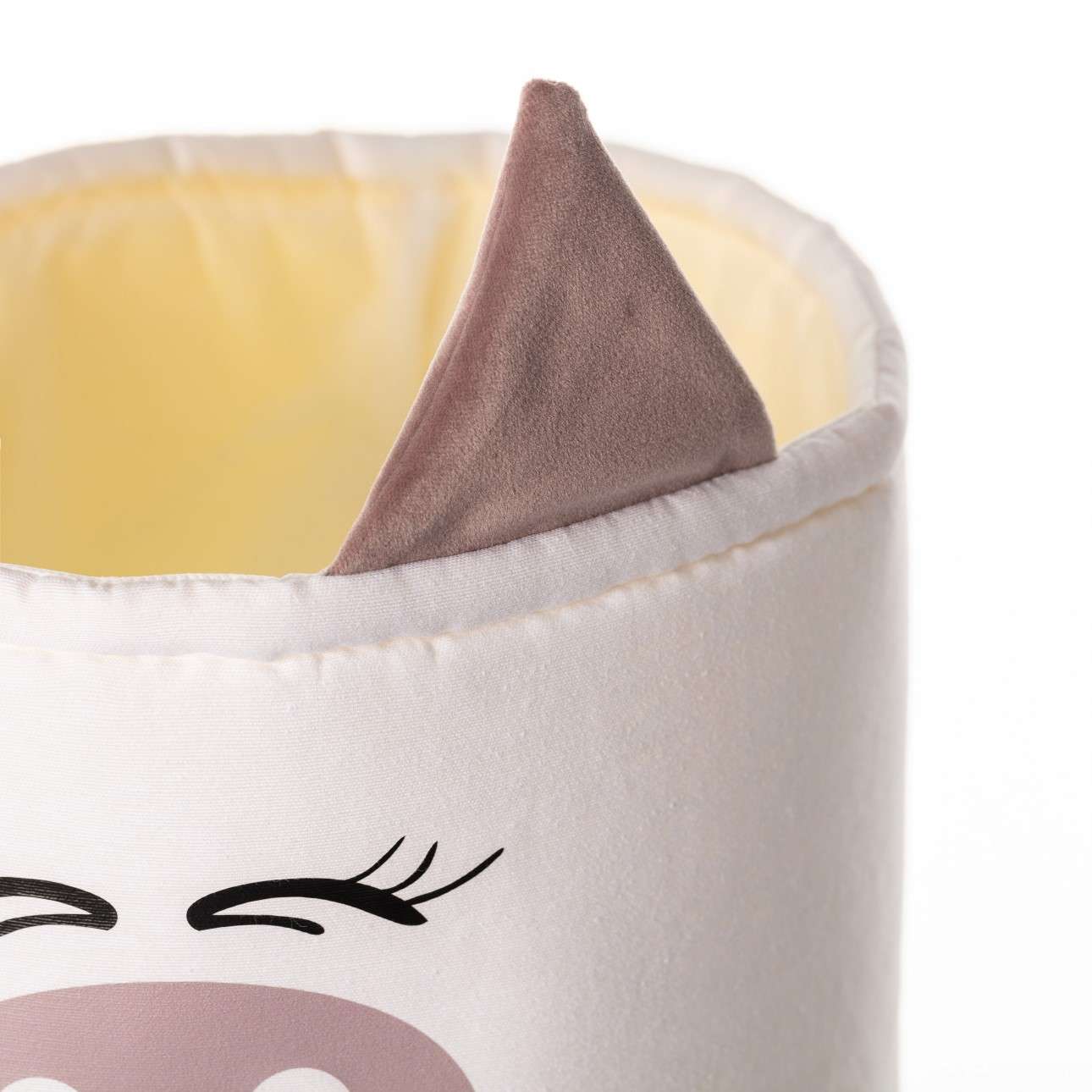 Kosz – świnka posiada urocze uszka wykonane z mięciutkiej tkaniny velvet, dzięki którym zachwyci twoją pociechę. Pozwoli utrzymać porządek w pomieszczeniu oraz posłuży jako dekoracja do pokoju dziecka. Jest lekki i bezpieczny w użytkowaniu, a także łatwy w utrzymaniu czystości, ponieważ nadaje się do prania w pralce. Do kompletu polecamy drugi, mniejszy kosz z tym samym motywem. Poznaj cały Happy Band!