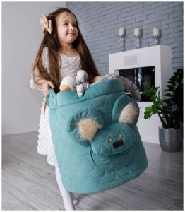 Dodatkowo mordka misia jest otwierana, a pod nią znajduje się praktyczna kieszonka, która pozwoli na przechowywanie najważniejszych skarbów i drobiazgów każdego smyka. Od wewnątrz kosza umieszczona została dodatkowa kieszonka, do której zmieszczą się kredki, książka czy tablet, a całość wyłożona została mocnym i trwałym satynowym materiałem.
