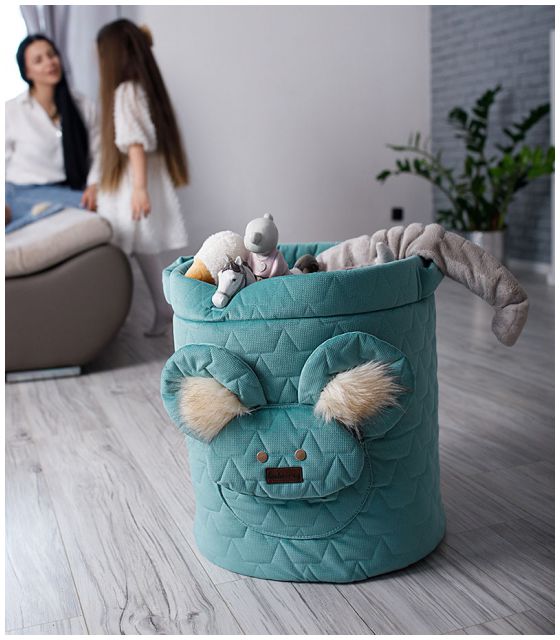Dno kosza jest usztywnione specjalną pianką dzięki czemu na nawet mocno wypełniony kosz utrzymuje swój kształt. W górnej części kosza znajdują się dwie wygodne rączki, które ułatwiają jego przenoszenie. A na froncie został umieszczony motyw misia, który rozweseli każdy pokój :)