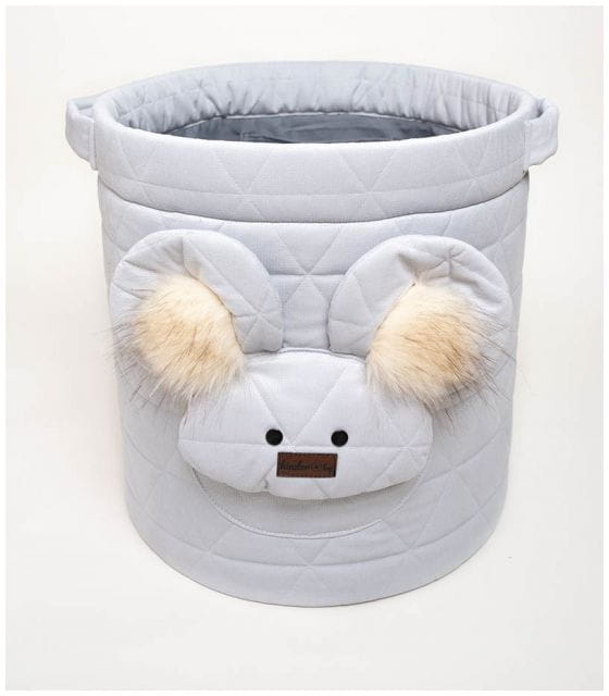 Dno kosza jest usztywnione specjalną pianką dzięki czemu na nawet mocno wypełniony kosz utrzymuje swój kształt. W górnej części kosza znajdują się dwie wygodne rączki, które ułatwiają jego przenoszenie. A na froncie został umieszczony motyw misia, który rozweseli każdy pokój :)