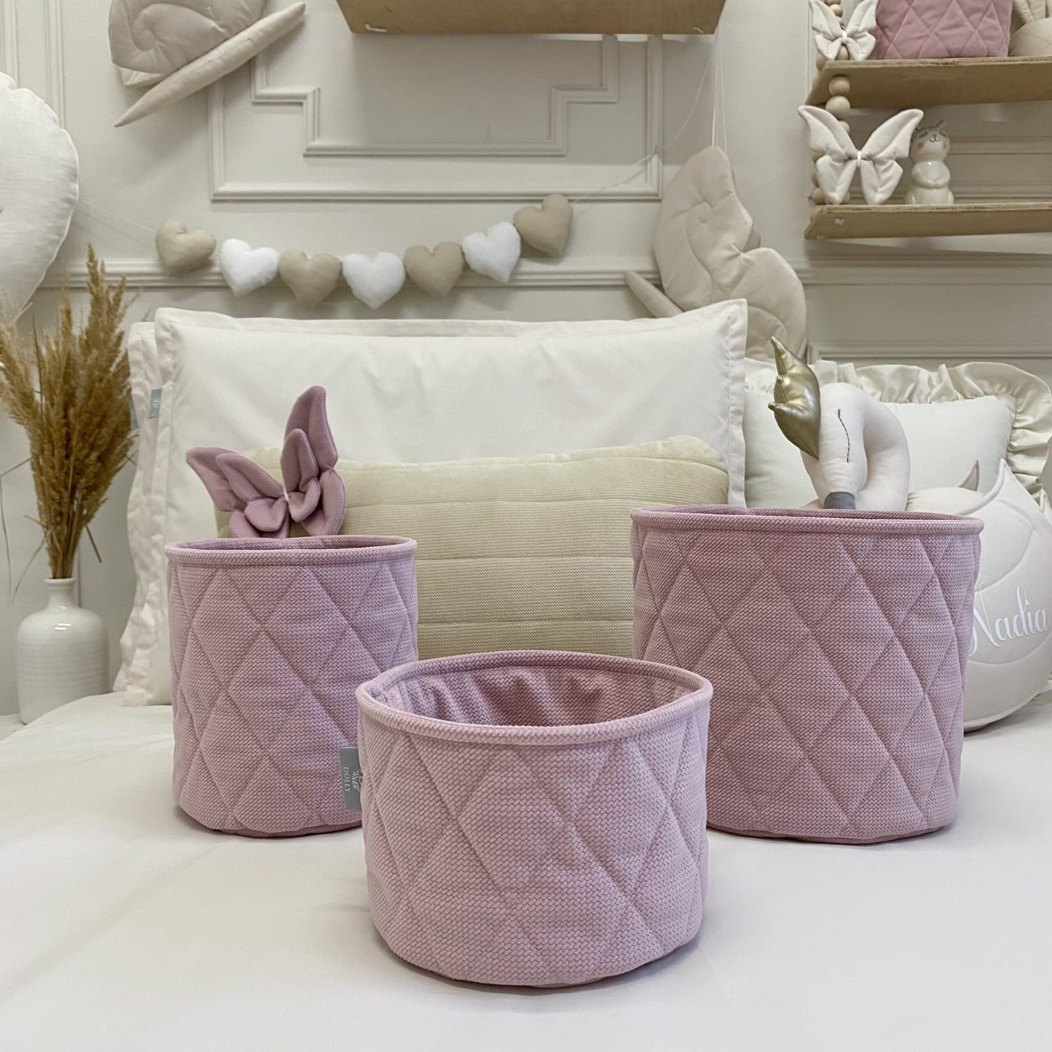 Koszyczek pikowany Velvet Delikatny Róż - rozmiary