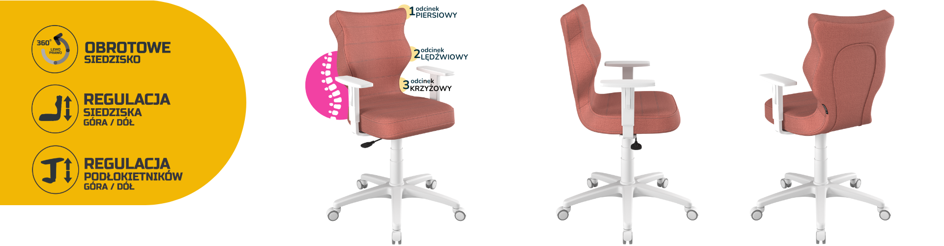 Krzesło tapicerowane białe Duo zostało tak skonstruowane, aby zapewnić maksymalny komfort i zadbać o zdrowie podczas wielogodzinnego siedzenia przy biurku przed komputerem czy przy nauce. Dzięki temu Twoje dziecko zachowa prawidłową postawę i nie odczuje zmęczenia nawet po długiej pracy. Co więcej, nowoczesny wygląd sprawia, że krzesło Duo białe doskonale wkomponuje się do każdego wnętrza.