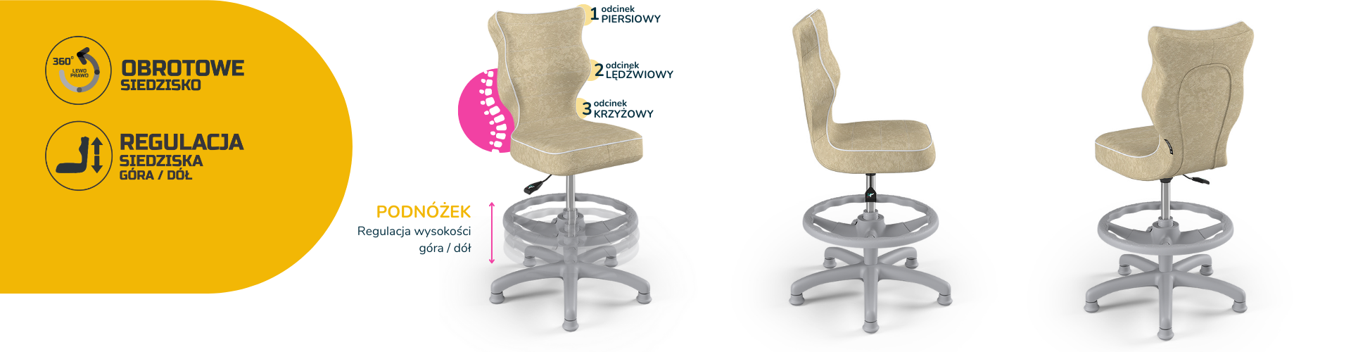 Model Petit z podnóżkiem dopasowany do biurek o wysokości 70-82 cm.