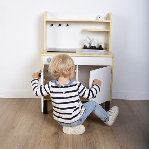 Pięknie wykonana, drewniana kuchnia dla małego kucharza, będzie świetnym prezentem zarówno dla dziewczynki jak i chłopca.
