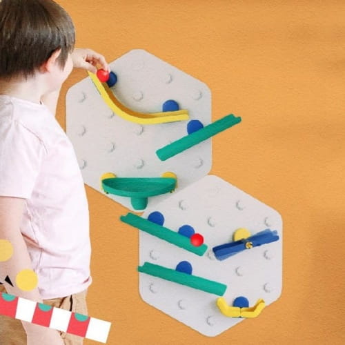 Dzięki zestawowi Marble Run stworzysz system torów według własnego pomysłu. Pomogą w tym zawarte w zestawie elementy konstrukcyjne - o różnej długości i kształcie. Celem zabawy jest zbudowanie toru tak, aby kulka dotarła do ostatniego elementu "meta". Wystarczy lekko zmienić kąt nachylenia toru a kulka poleci w zupełnie innym kierunku. W tej jednej zabawce są setki możliwości budowy toru - nawet nie zauważysz, gdy Twoje dziecko stanie się młodym inżynierem.