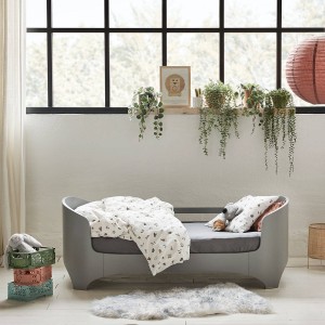 Zacznij od łóżeczka z podniesionym dnem oraz wysokimi barierkami bocznymi i szczytowymi. Gdy Twoje dziecko podrośnie i zacznie wstawać, możesz obniżyć dno. Z czasem maluch będzie w stanie samodzielnie wchodzić do łóżeczka i wychodzić z niego – wówczas możesz usunąć pierwszą z barierek, potem kolejne. Gdy barierki nie będą już potrzebne, usuń je wraz z wysokimi elementami szczytowymi. W ten sposób szybko i łatwo przekształcisz urocze łóżeczko niemowlęce w piękne łóżko „Junior”.