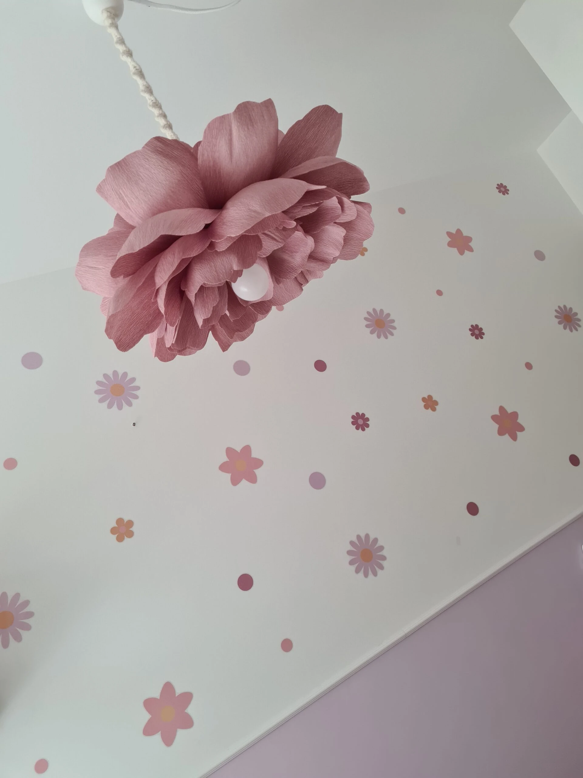 Słowa kluczowe: lampa sufitowa kwiat, lampa brudny róż, ręcznie robiona lampa, lampa kwiatowa, lampa boho, dekoracyjna lampa sufitowa