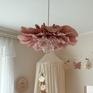 Lampa sufitowa w kształcie kwiatu w kolorze brudnego różu to dekoracyjne oświetlenie, które wprowadza do wnętrza ciepły i przytulny klimat. Ręcznie wykonany klosz inspirowany kwiatem sprawia, że lampa idealnie pasuje do pokoju dziewczynki, sypialni lub wnętrz w stylu boho.