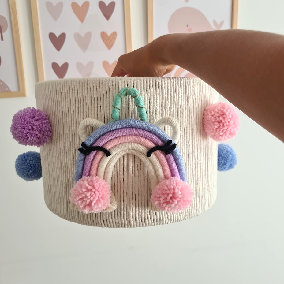 Lampa sufitowa „Jednorożce” to ręcznie wykonana lampa z filcu i makramy z uroczym motywem jednorożców. Delikatne pastele i naturalne materiały tworzą magiczny klimat w pokoju dziewczynki.